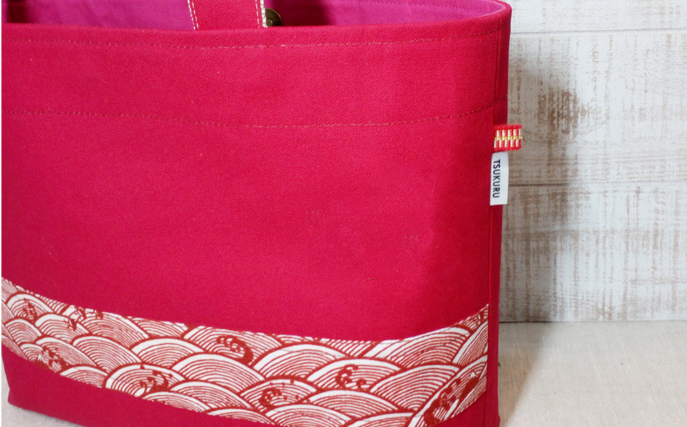 普段使いから、お仕事のサブバッグとしても 手作りトートバックA(赤ハンプ和柄)【手作り 手提げ サブバック ハンドメイド ポケット付 1点もの 人生の楽園】K023045