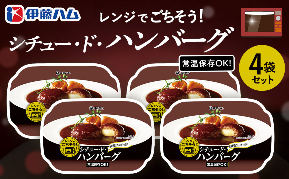 レンジでごちそう! ふんわりジューシーな味わいを手軽に楽しもう! レンジでごちそう シチュー・ド・ハンバーグ×4袋【伊藤ハム 簡単 旨み ジューシー 手軽 美味しい 食べ応え 時間短縮 贅沢 風味 満足感 温める】K021055