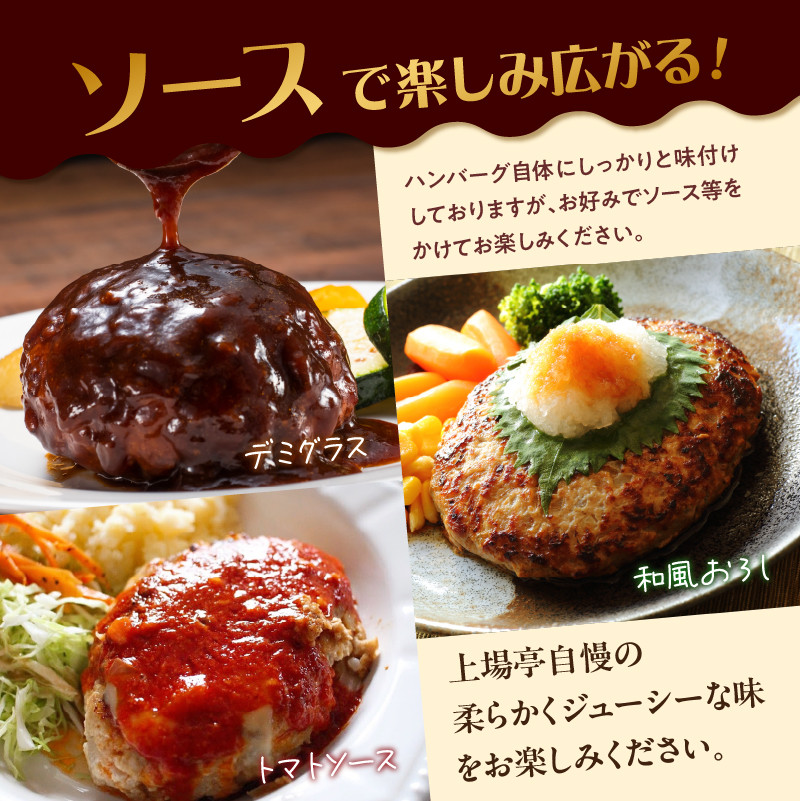 厳選した佐賀牛、佐賀県産豚肉のみを使用したハンバーグです。独自のスパイスとブレンドし、一つ一つ丁寧に練り上げています。上場亭自慢の柔らかでジューシーな味をお楽しみください。