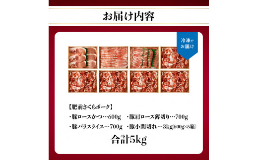 佐賀県産豚肉(肥前さくらポーク)詰合せギフトセット 合計5kg!/ 豚肉 豚ロース ロースかつ 豚肩ロース 豚バラ 豚こま 細切れ ブランド 豚 肥前さくらポーク ギフト 豚しゃぶ とんかつ 豚丼 ぶた 肉 お肉 国産 佐賀県 玄海町産 冷凍