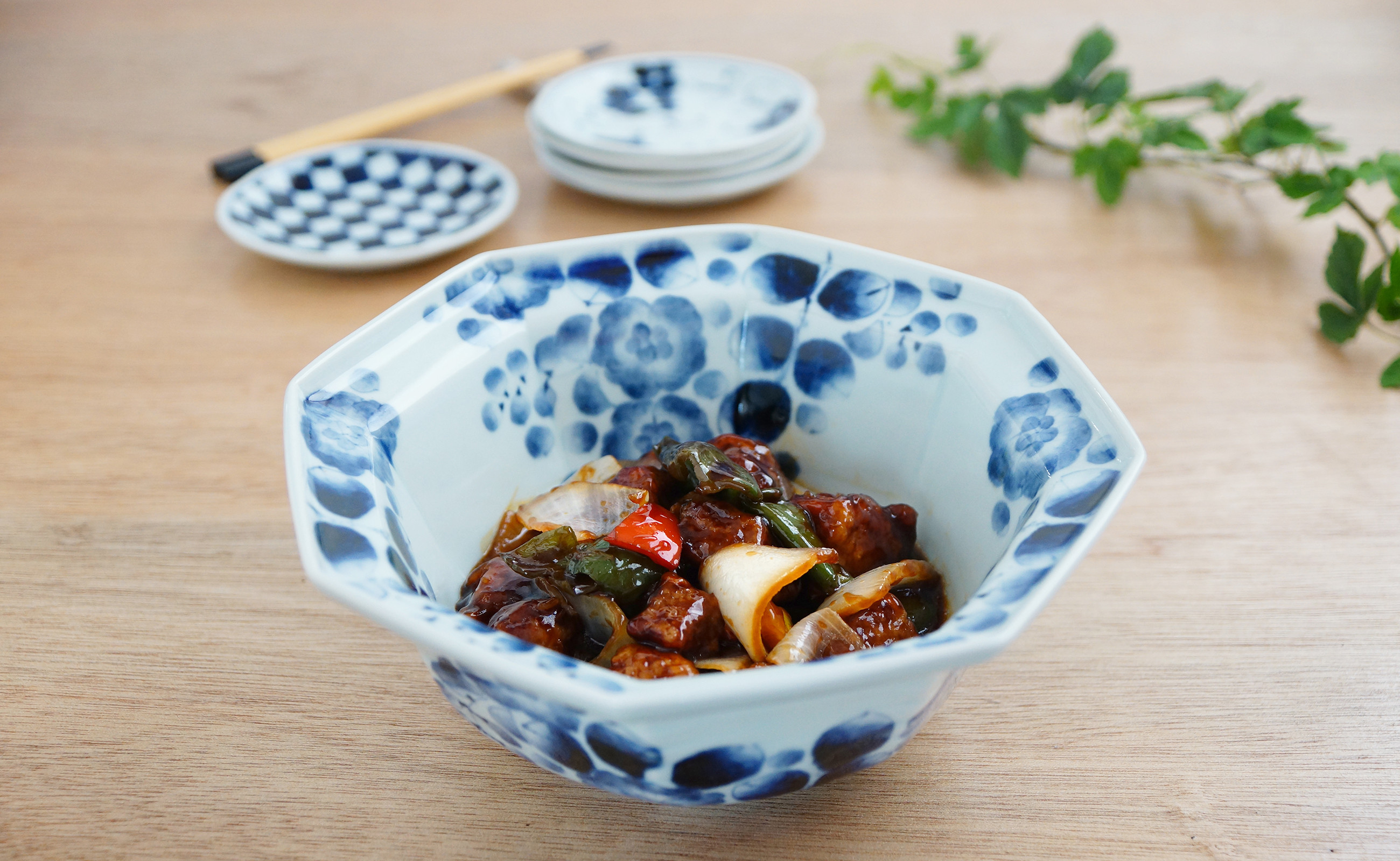 愛らしい染付で人気の山口洋一さんの手作りの器です。 和食、洋食のどちらにも使える便利な器をセットでご用意しました。食卓で手作りのあたたかさを感じていただけます。 窯元:山口洋一工房 提供:有限会社青雅堂