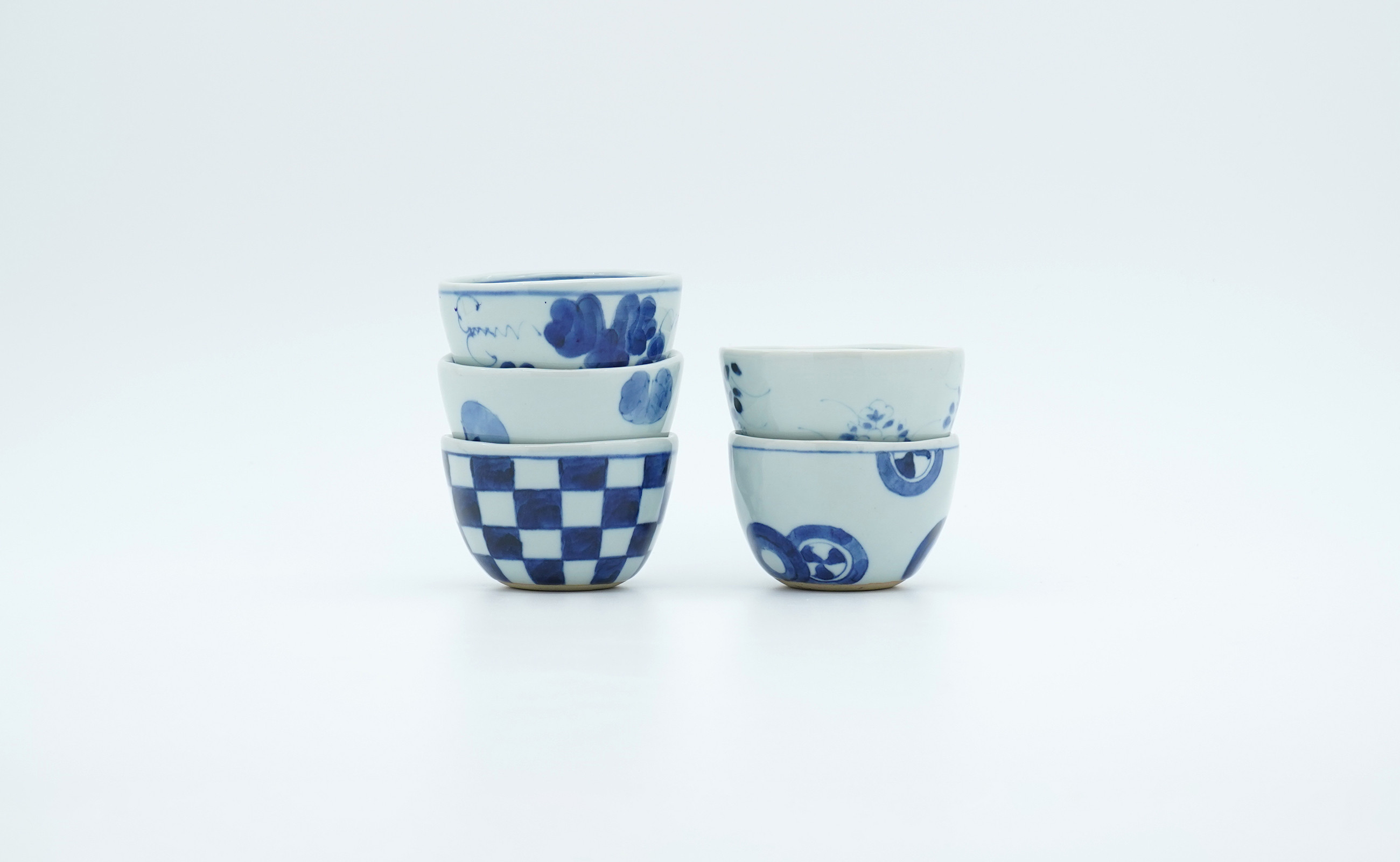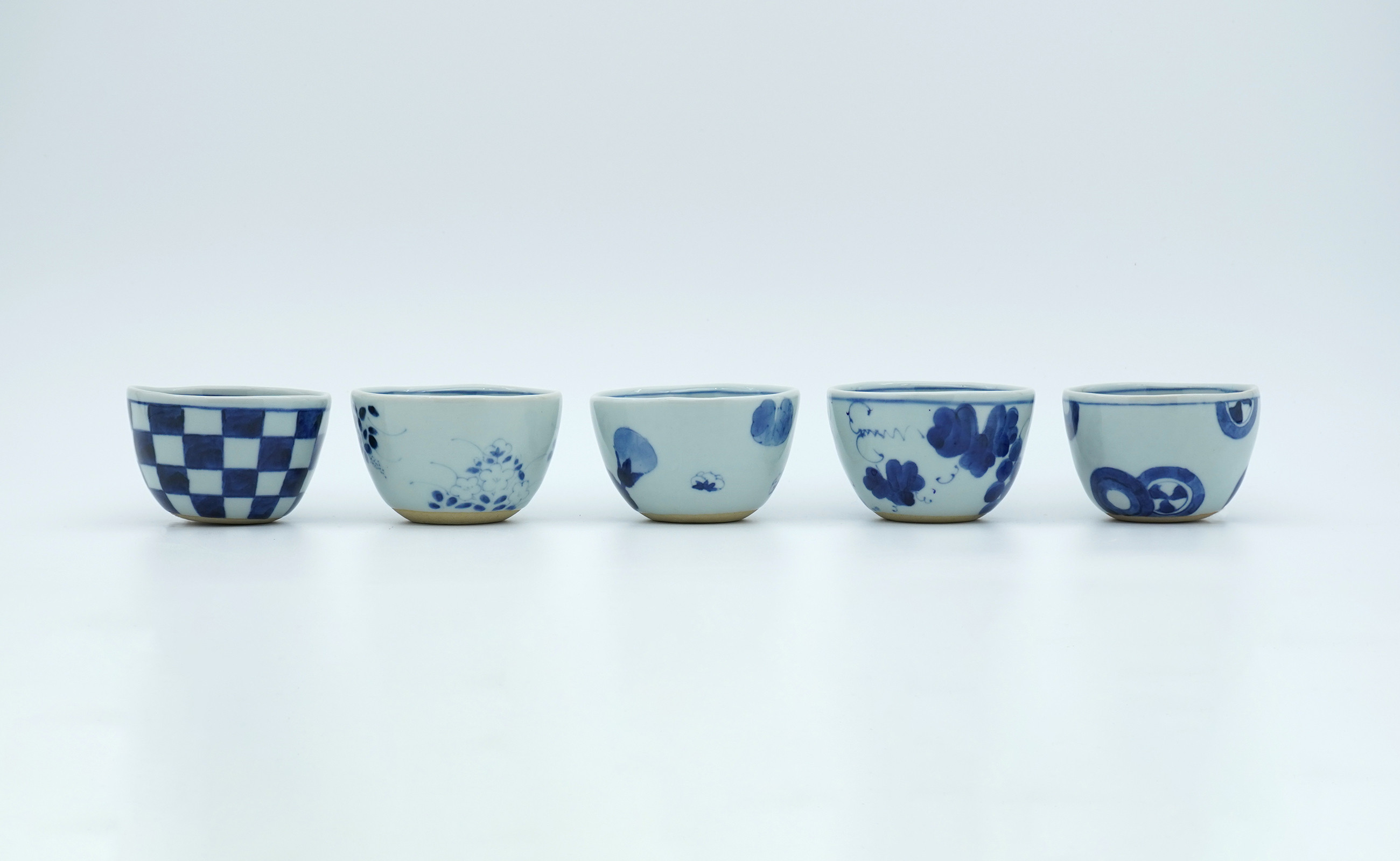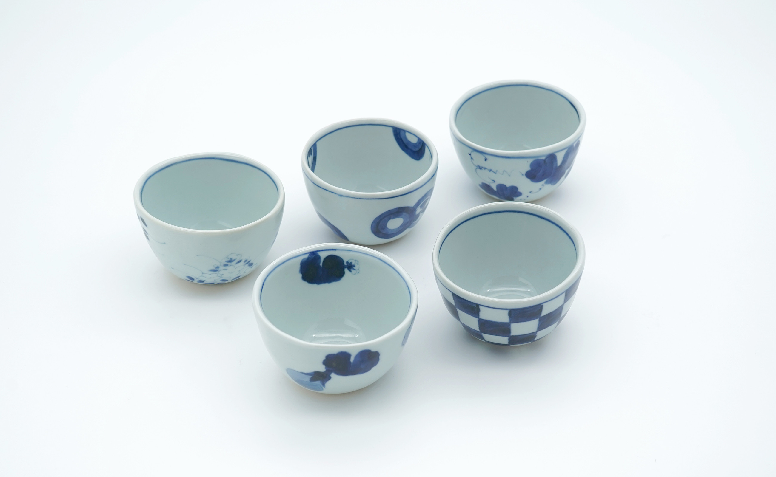 山口洋一工房 絵変り手びねりせん茶 5個セット 有田焼 食器 器 うつわ コップ カップ 湯呑 煎茶 小鉢 染付 手描き 湯呑 手作り 市松 小さめカップ 湯呑み フリーカップ 絵変わり ギフトセット 贈答 40000円 4万円 A40-97