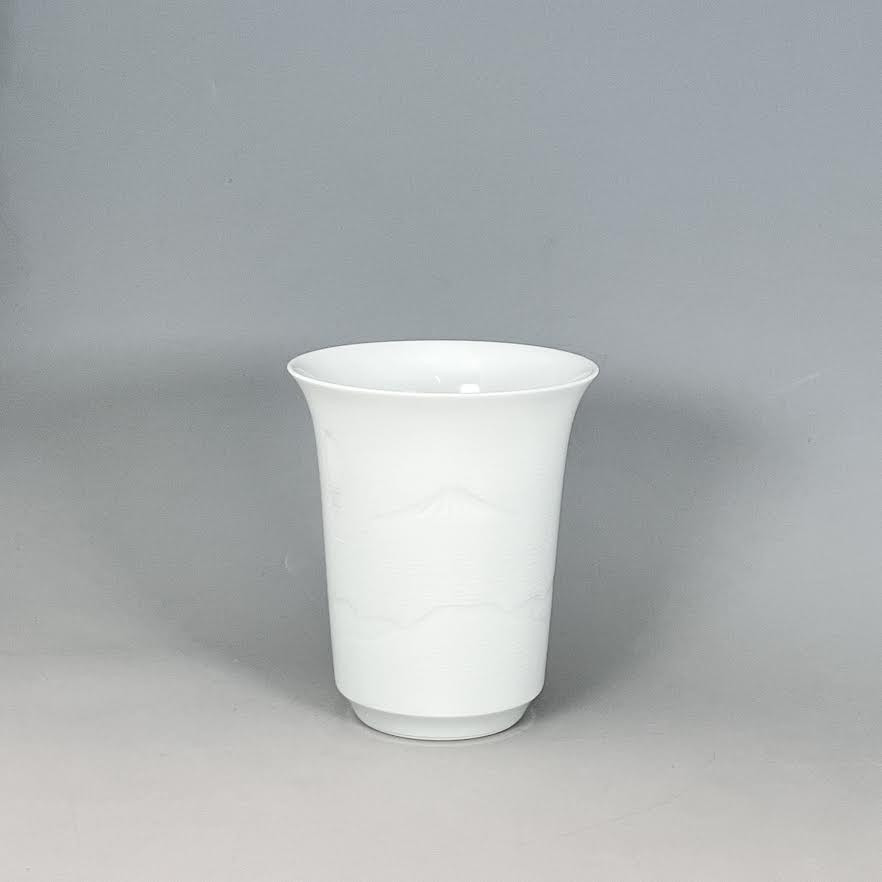 現代の名工 奥川俊右ェ門作 白磁富士山文フリーカップ A95-12