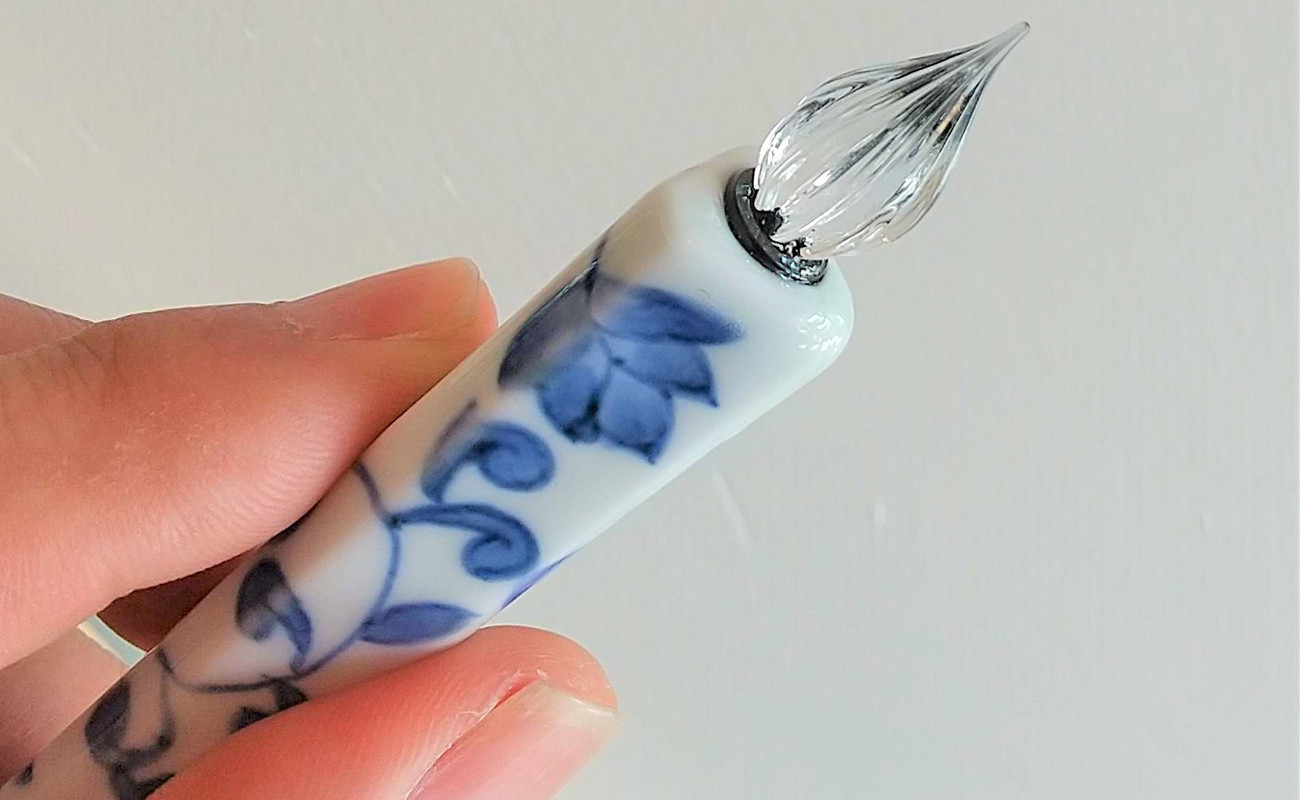 これぞ有田焼という感じの福珠窯さんの有田焼ガラスペンです。