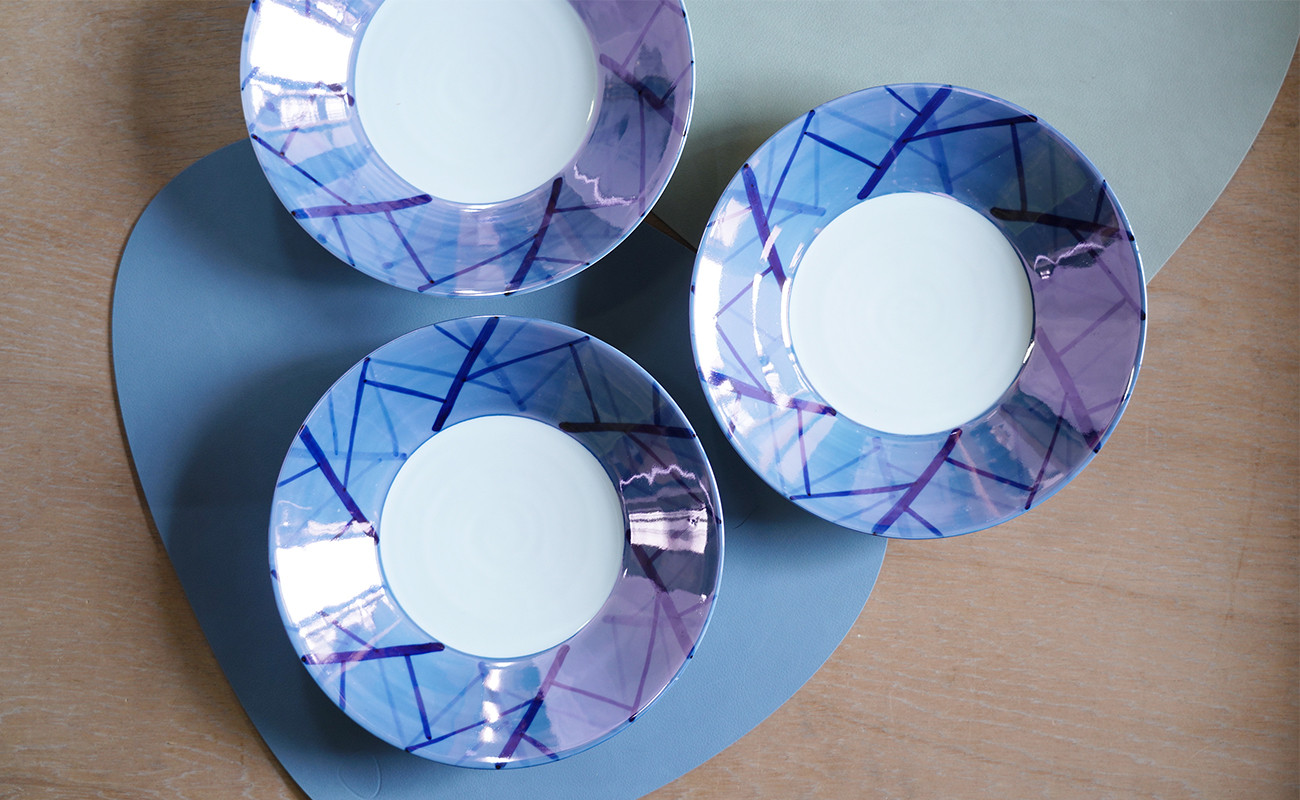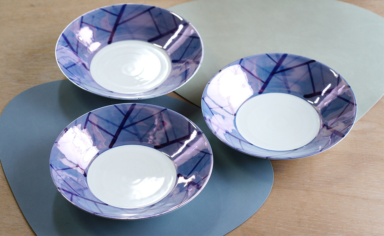 鮮やかな泉黄と上品な紫、食卓を彩る有田焼のモダン深皿