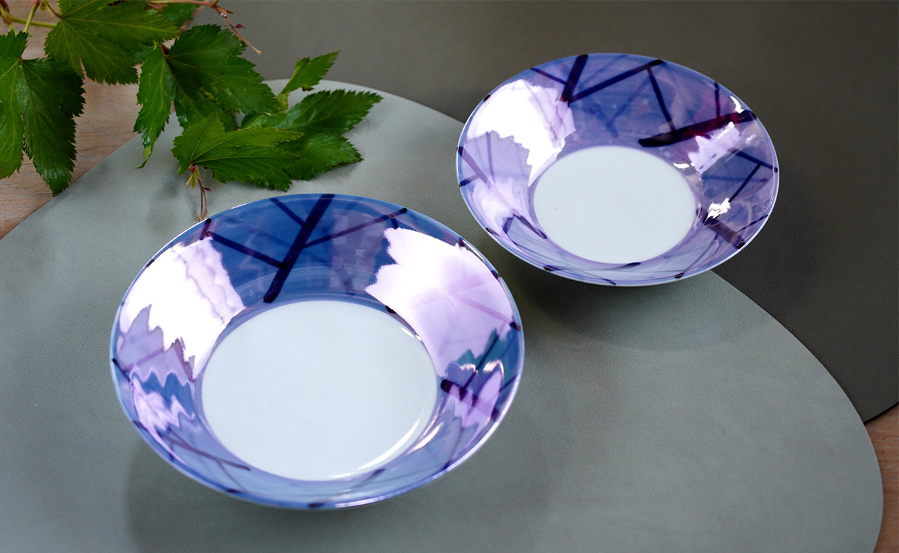 鮮やかな泉黄と上品な紫、食卓を彩る有田焼のモダン深皿