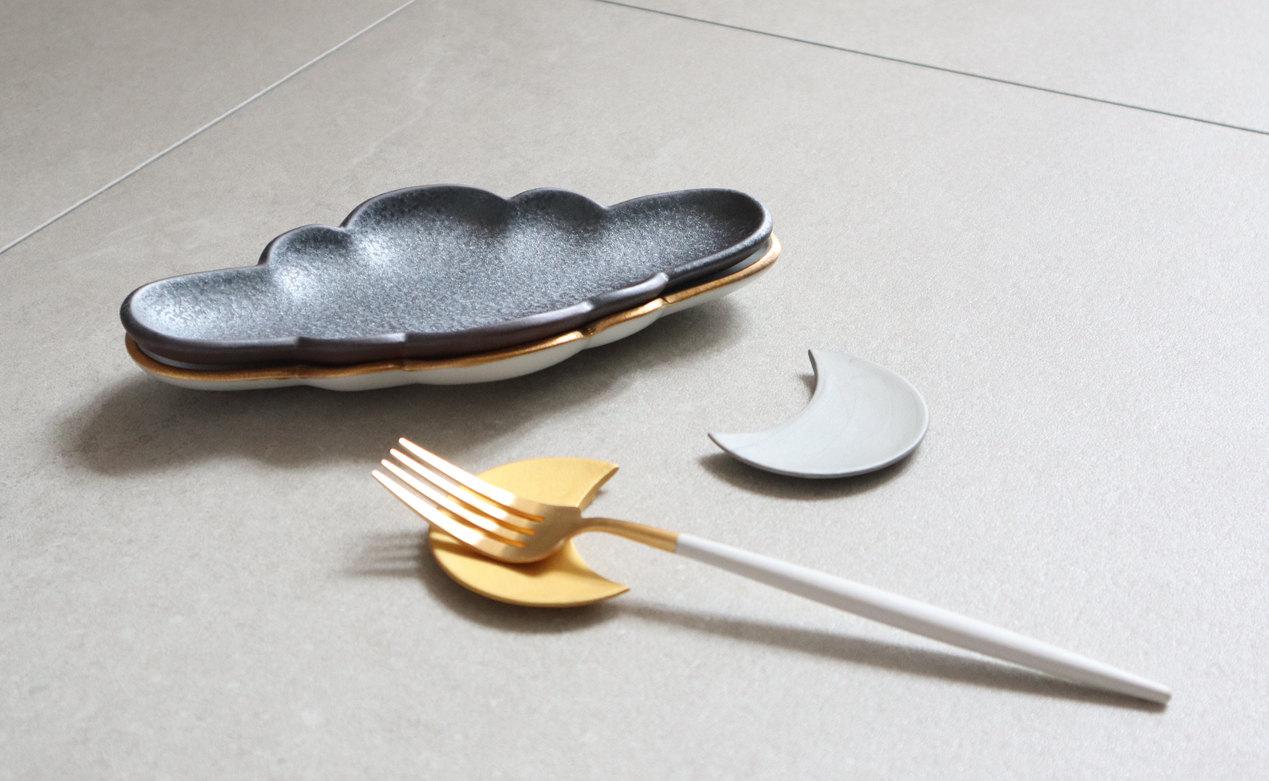 月の形のカトラリーレストは、箸置きだけでなく、スプーンやフォーク、ナイフレストとしてもお使い頂けます。