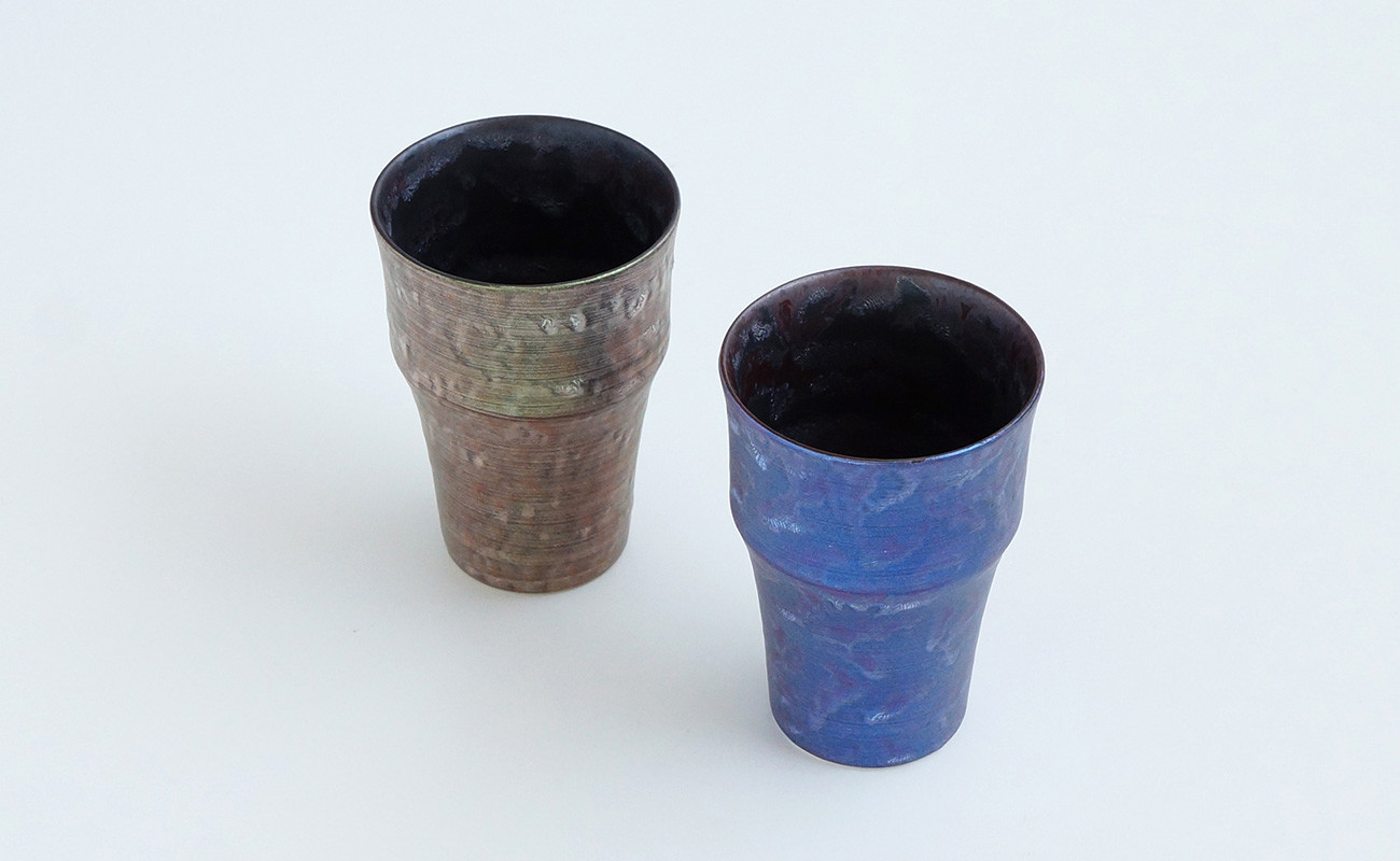 磁器とは思えないメタリックな質感と見る角度で変わる不思議な光彩が特徴です。