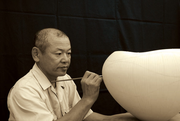 ロクロで成形後、加飾はすべて手作業で行ってます。
