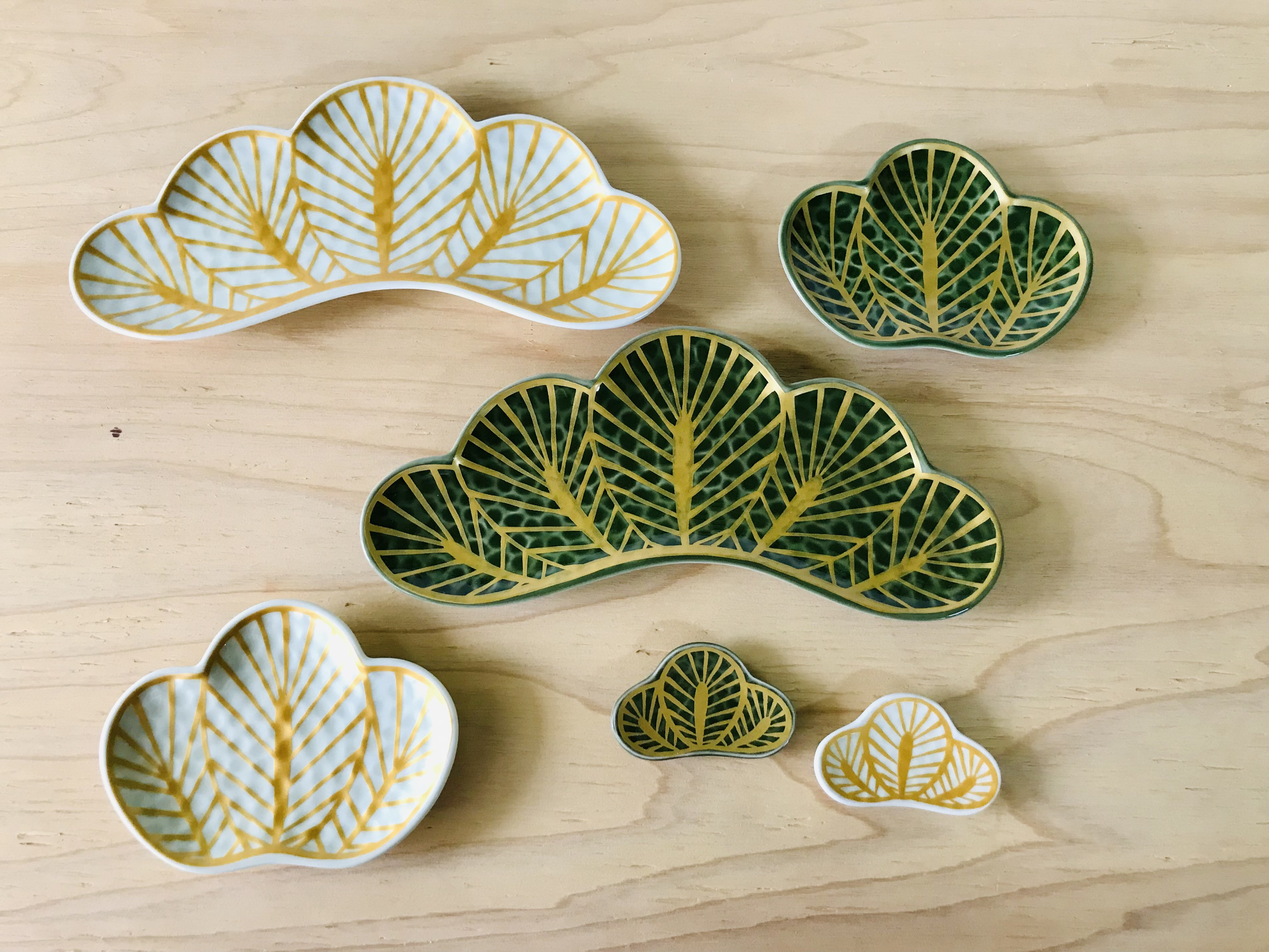 縁起の良い絵柄で、食卓に笑顔の華が咲きます♪ 有田焼 招福はしおき/松型3色セット 深海三龍堂 ハレの日 松葉 縁起物 お正月 箸置き レスト おもてなし A12-196