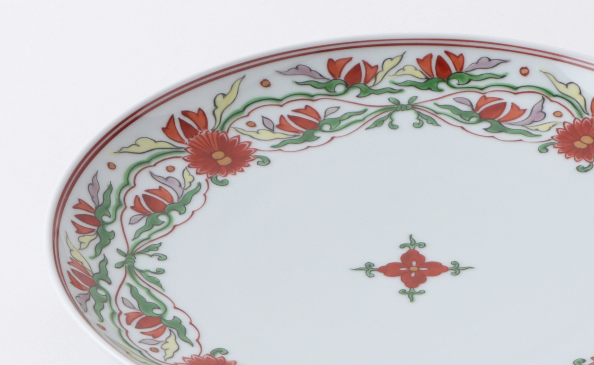 多彩な色絵を大胆に使い、華やかに花唐草を描きました。