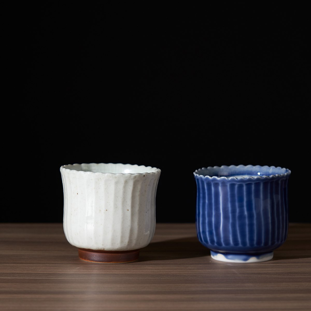 2020年の新作として白磁に高台を錆釉で色付けした「しろ」とこれまでも制作していた瑠璃釉の「うす瑠璃」の2種類のセットです。