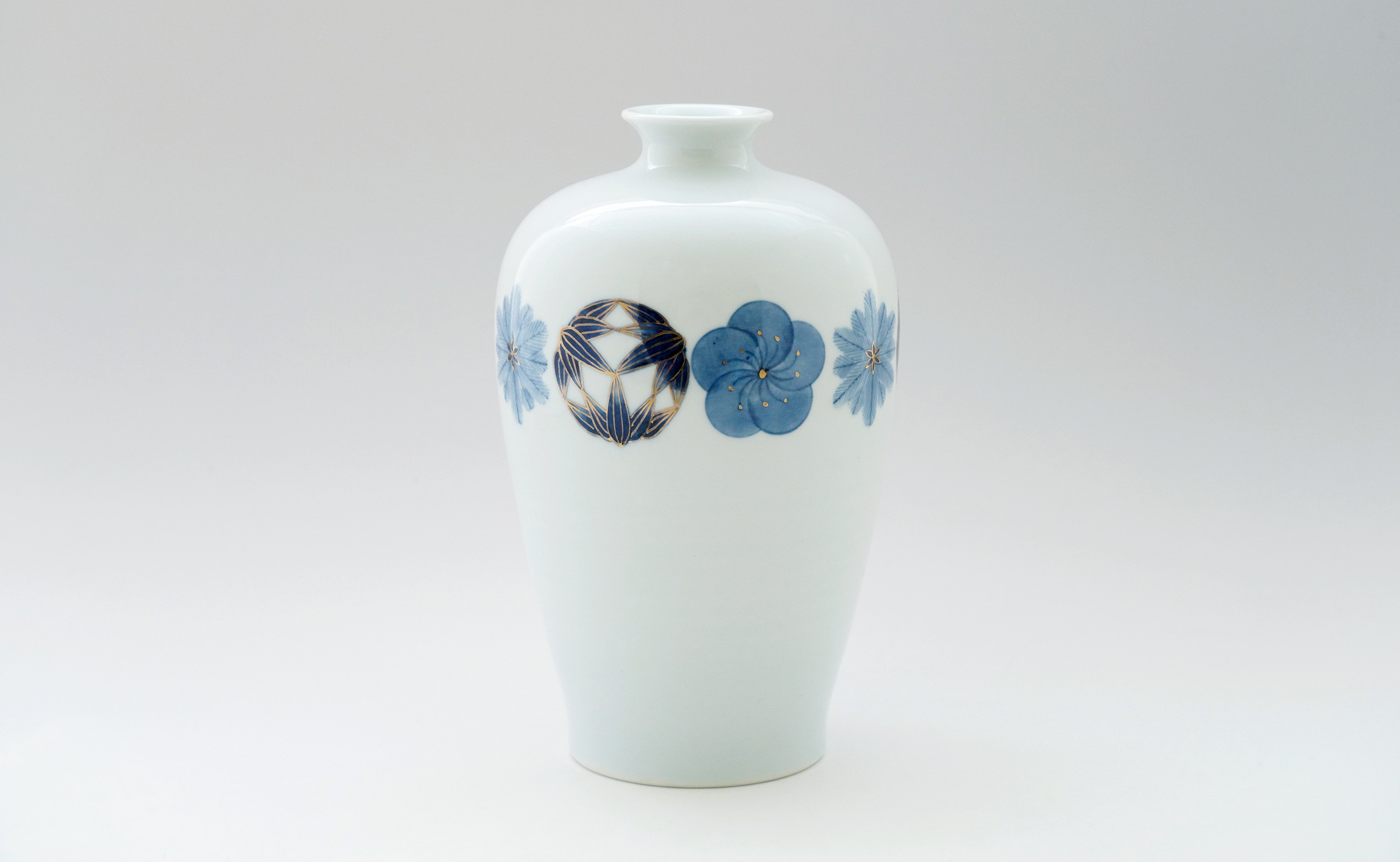 チョイス限定 アクセントに金を施し、モダンな雰囲気に仕上げています。 しん窯 青花 金彩松竹梅花器 有田焼 A110-30