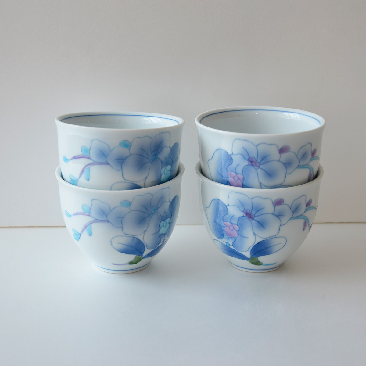 幸せの象徴胡蝶蘭の器、いっぷく碗 有田焼 華山窯(胡蝶蘭中鉢・いっぷく碗4個セット) 東洋セラミックス A25-297