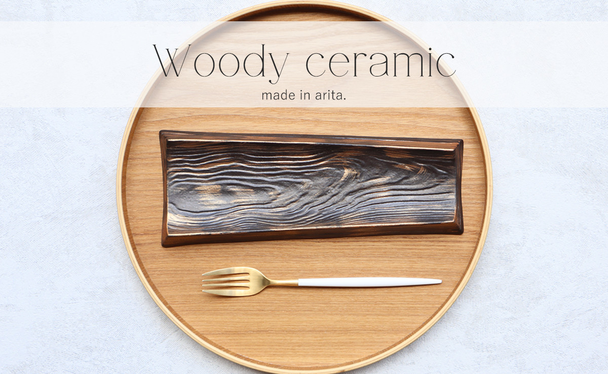 まるで木の板のような有田焼(陶磁器製)のプレートです。