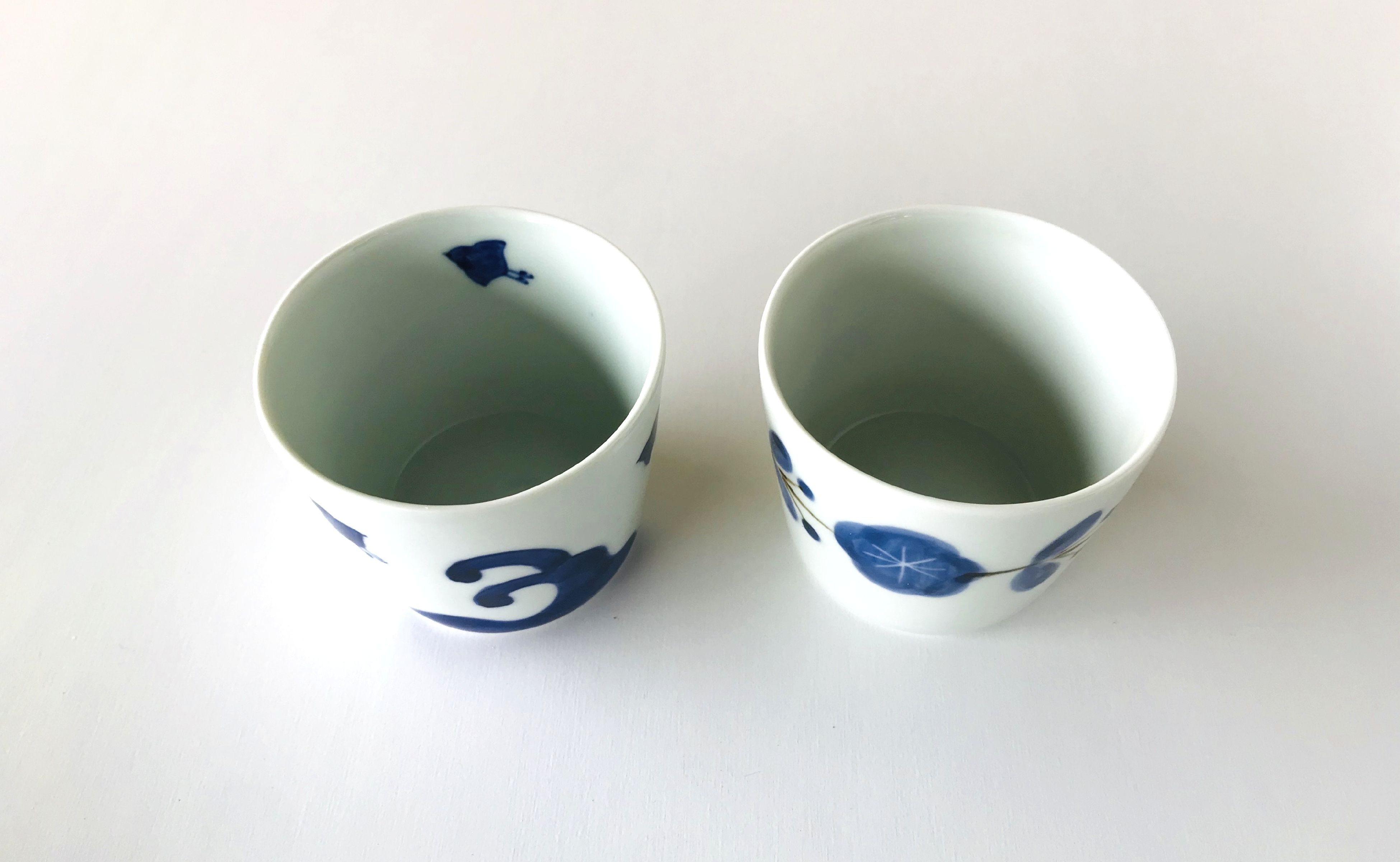 筆跡が残り、手作業で描かれたことが伝わる皓洋窯のソバ猪口。