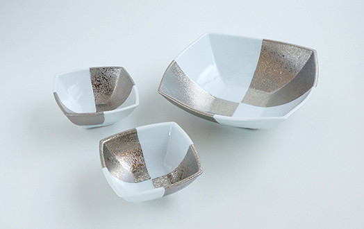 縁起の良い市松文様を プラチナ色であしらい シンプルモダンな器に! 和洋中のいろいろな料理にも使え、色が映えるように仕上げました。 取り皿はもちろん、いろいろお使いいただけます。 同じシリーズのお品が他にもありますので、揃えて使ってみてはいかがでしょうか。 窯元:逸山窯 提供:鷹巣瑞光堂