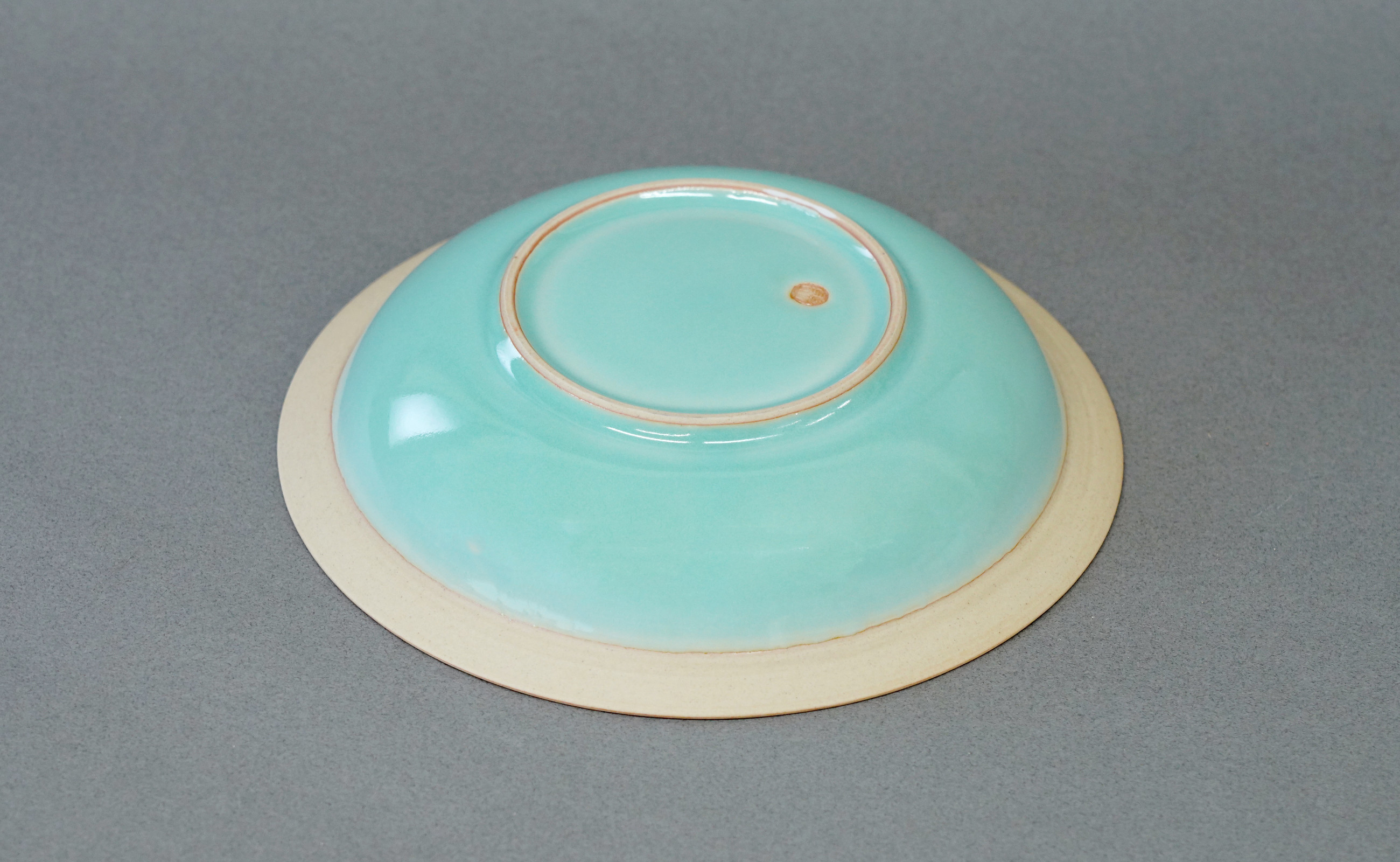 透明感のある青緑色が美しい「翡翠リム皿(大)」です。