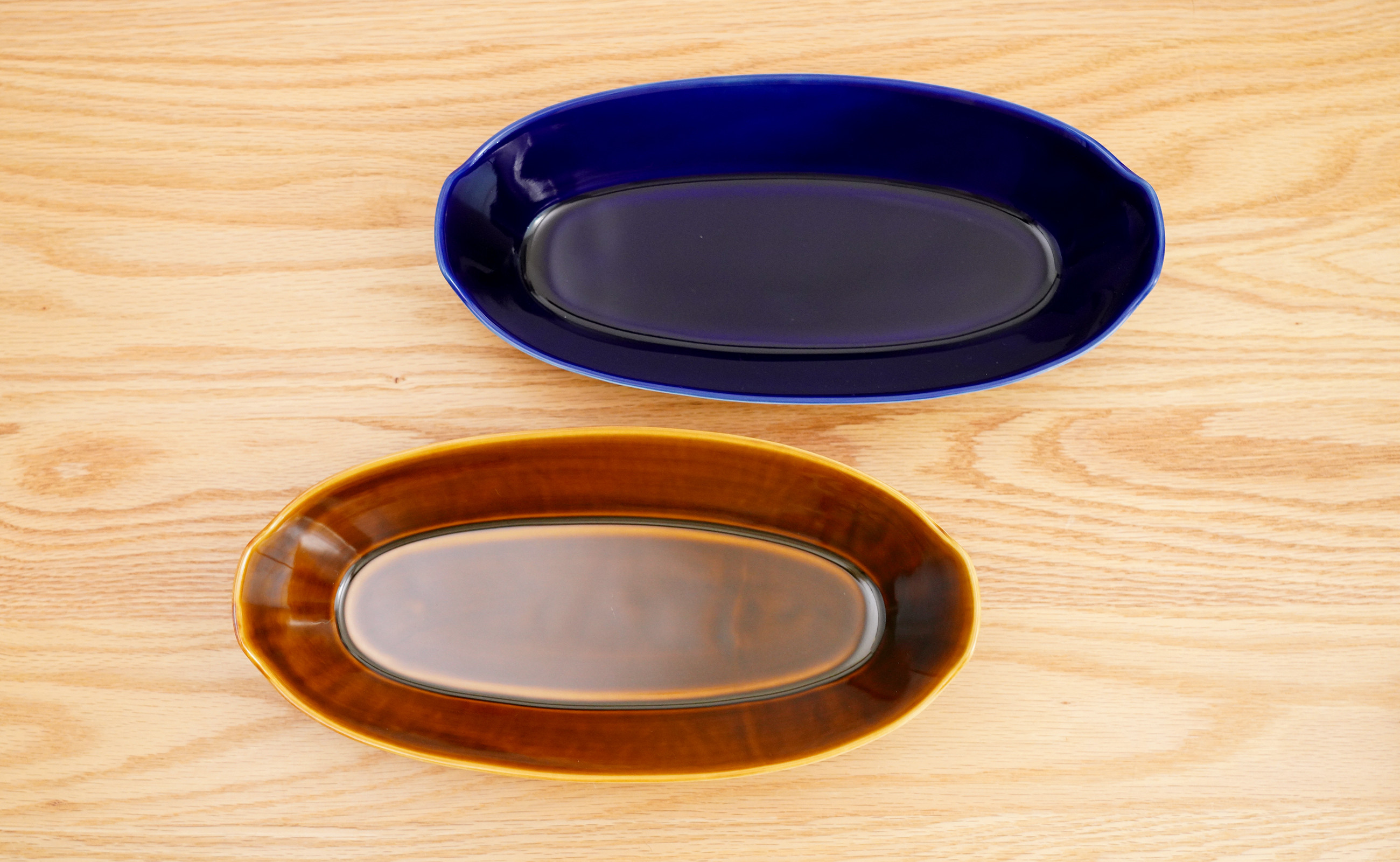 スリムで深さのある、オリジナル楕円鉢のペアセット。