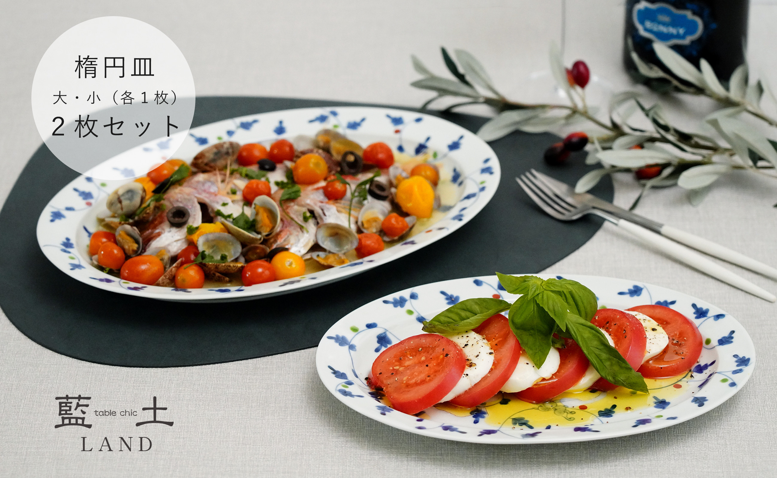 有田焼 藍土オリジナルオーバルプレート/青玉・赤玉ペアセット…