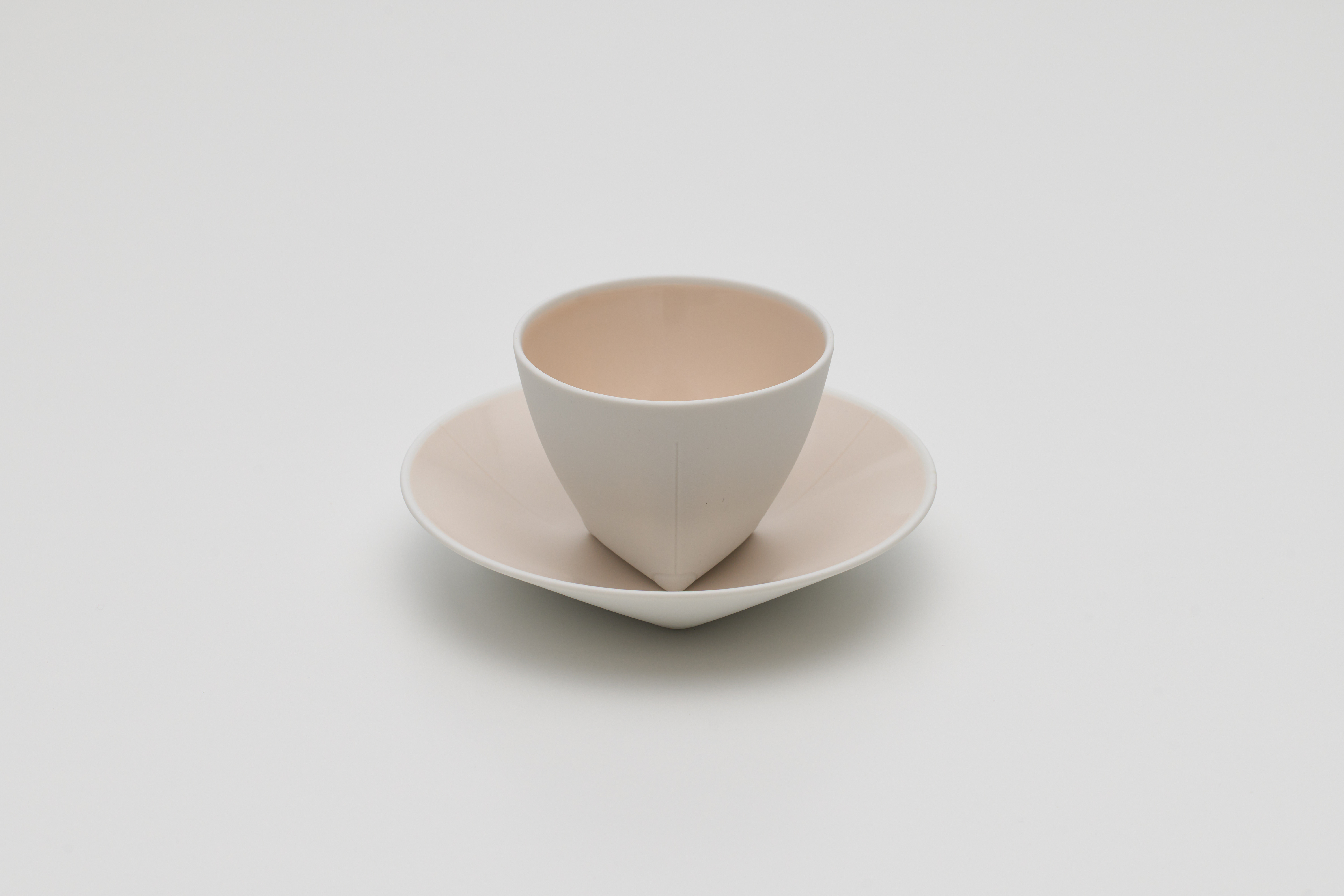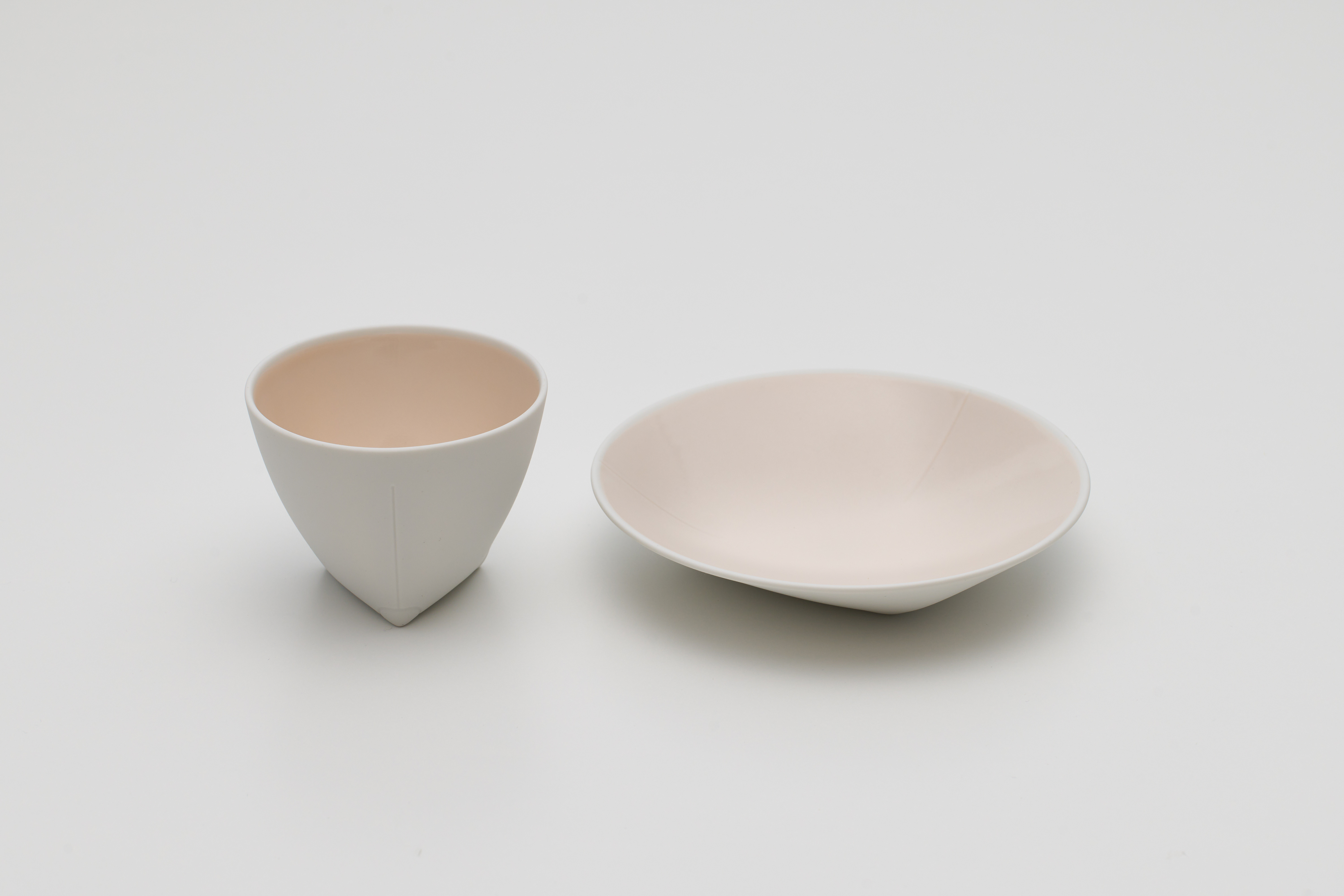 有田特有の製造技術が、フランス人デザイナー、ポーリーン・デルトゥアに多大なインスピレーションを与えました。伝統的な日本の器に残る高台をデザインモチーフにすることで、特徴的な印象を持ったシリーズが生まれました。彼女は、自身のコレクションのために、形とプロポーション、容量と扱い方における適切なバランスを探ろうと、アジアとヨーロッパの日々の生活で使われるカップやお皿の類型論を学びました。またダークブルー、煉瓦色、青磁など伝統的な日本の磁器から見つけた釉薬の色が、彼女によって新鮮な方法で用いられています。