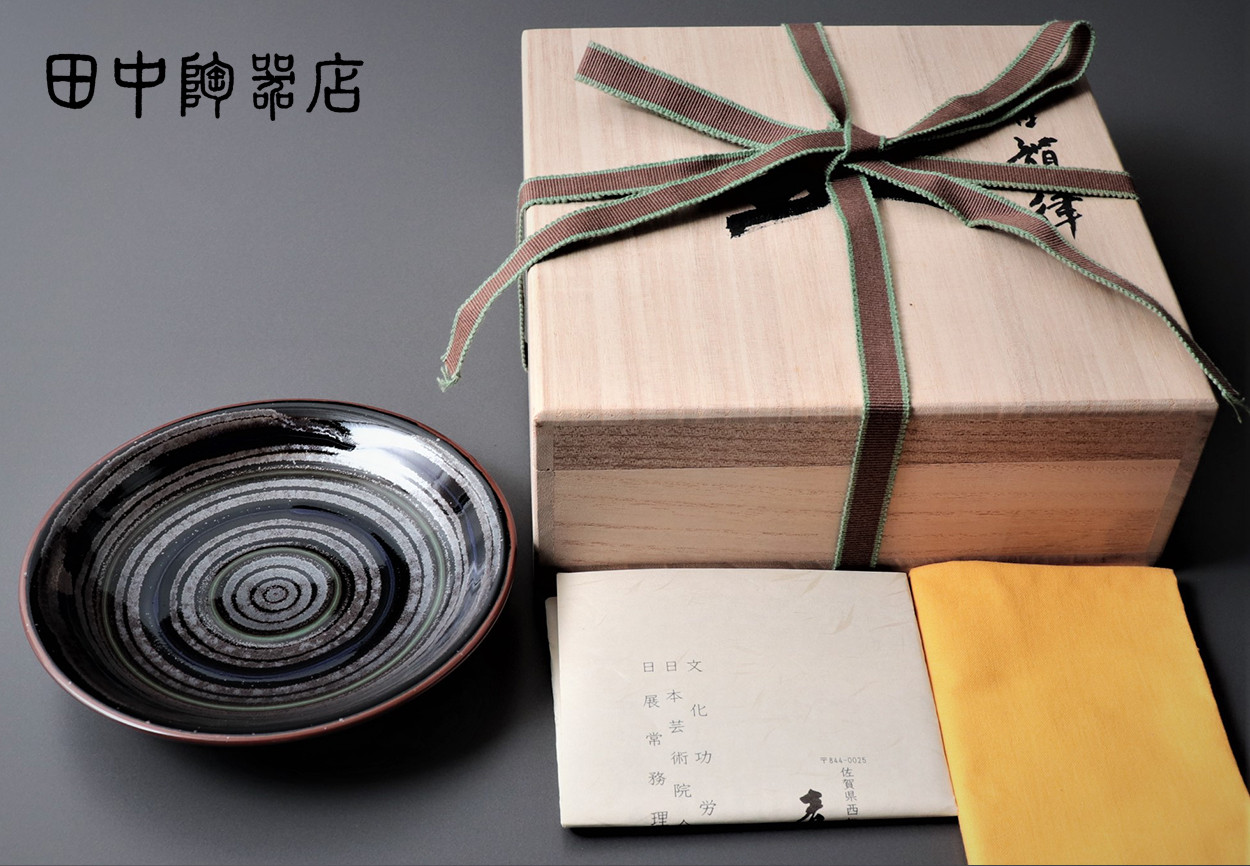 文化勲章受章 青木龍山作 天目韻律皿 田中陶器店 A450-20