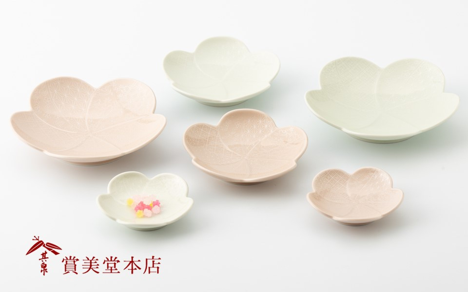 お正月やお祝いの席・ギフトにもおすすめ 有田焼【其泉】紅白梅形皿 大中小 6枚 セット【賞美堂本店】食器 皿 うつわ 賞美堂 白 ピンク お祝い お正月 ギフト A55-116
