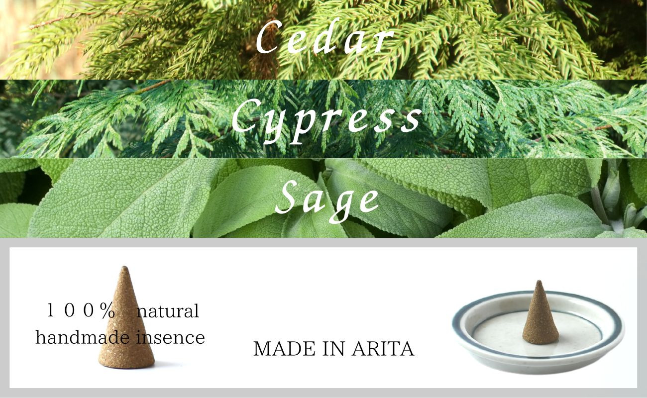 有田焼の台皿と3種類の100%ナチュラルなお香のセット 自然素材100% お香セット コーンタイプ(杉・檜・セージ)各10個 & 有田焼台皿【ARITAYAKI-STORE】有田焼 お香 お香立て 香皿 セット リラックス 癒し 瞑想 天然原料 ハンドメイド A15-357