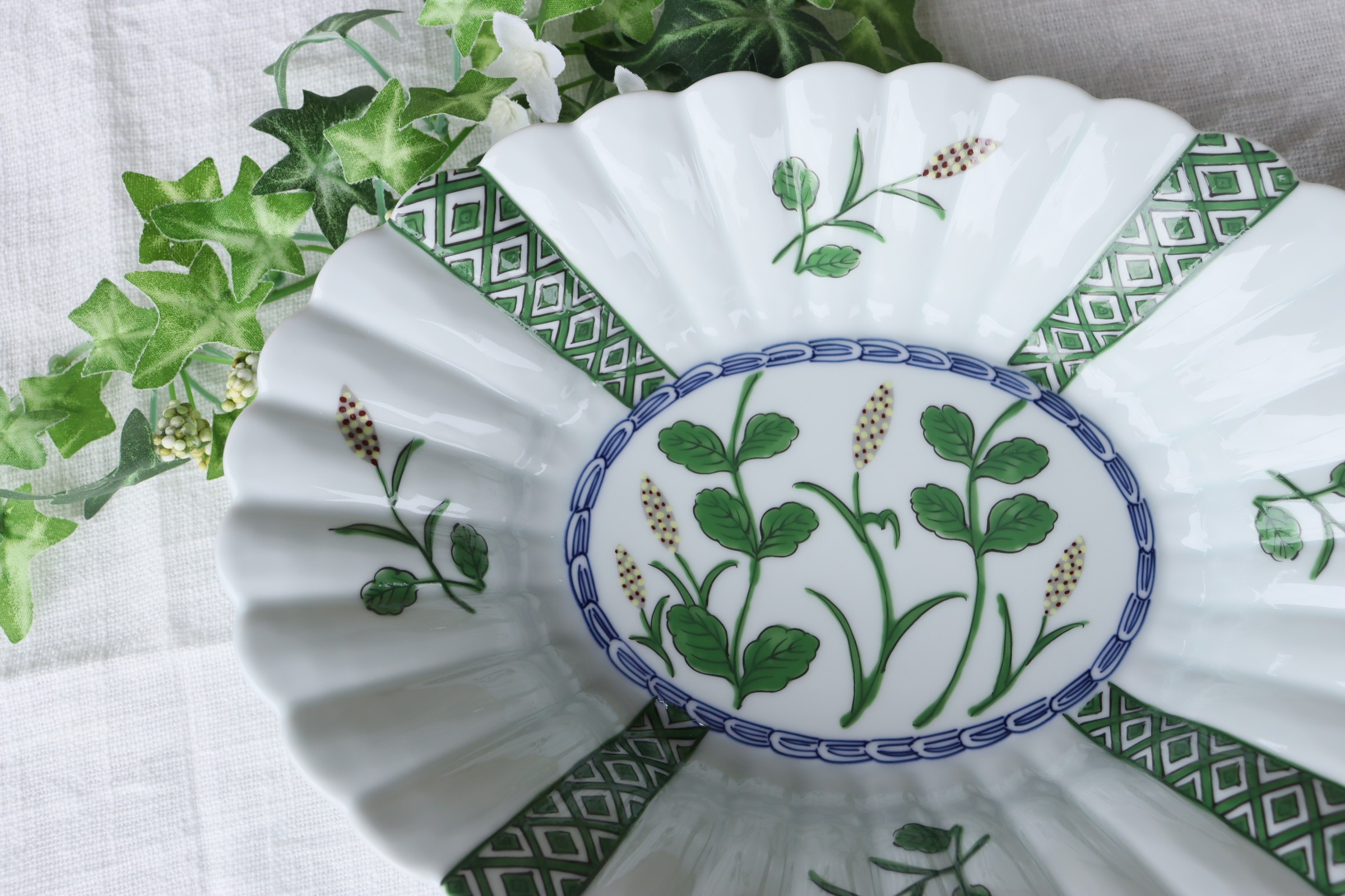 【テーブルに華を添える】 有田焼 麦デザイン 菊型楕円鉢 25cm …