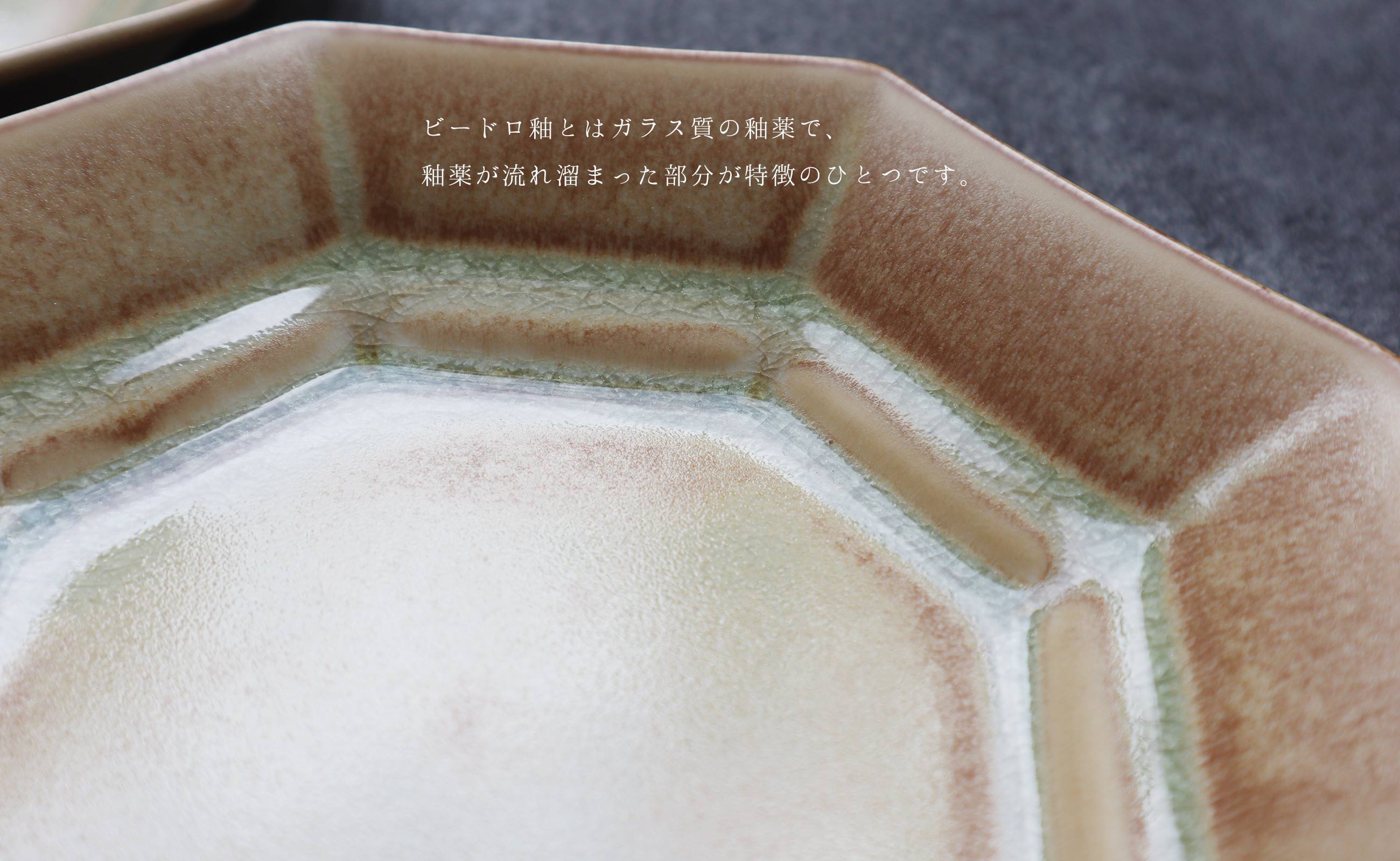 【まるふくオリジナル】有田焼 ビードロ釉八角皿2枚セット ま…