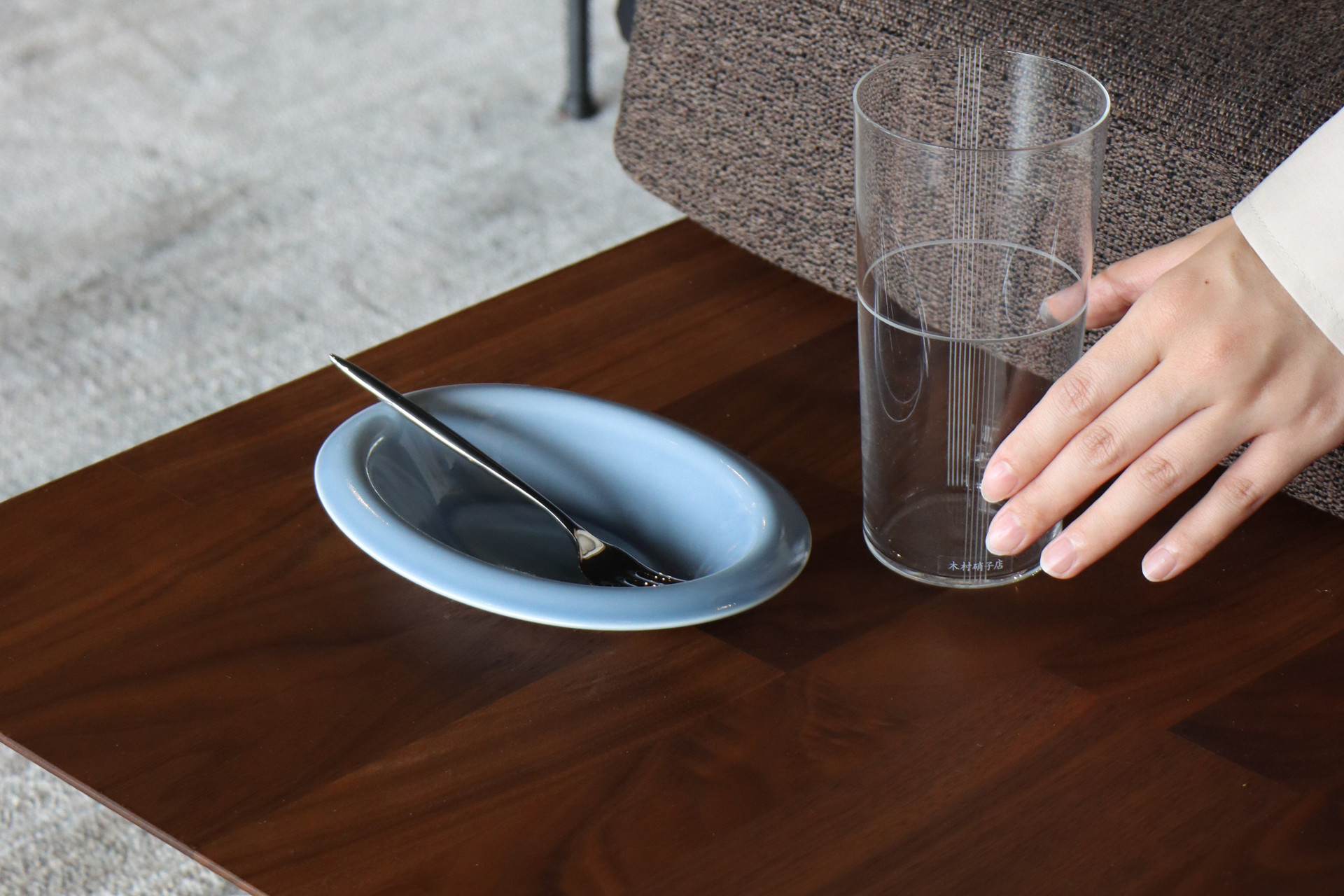 またテーブルに余白を生み出すリムは、食卓にサーブするとき指にフィットするように考えました。