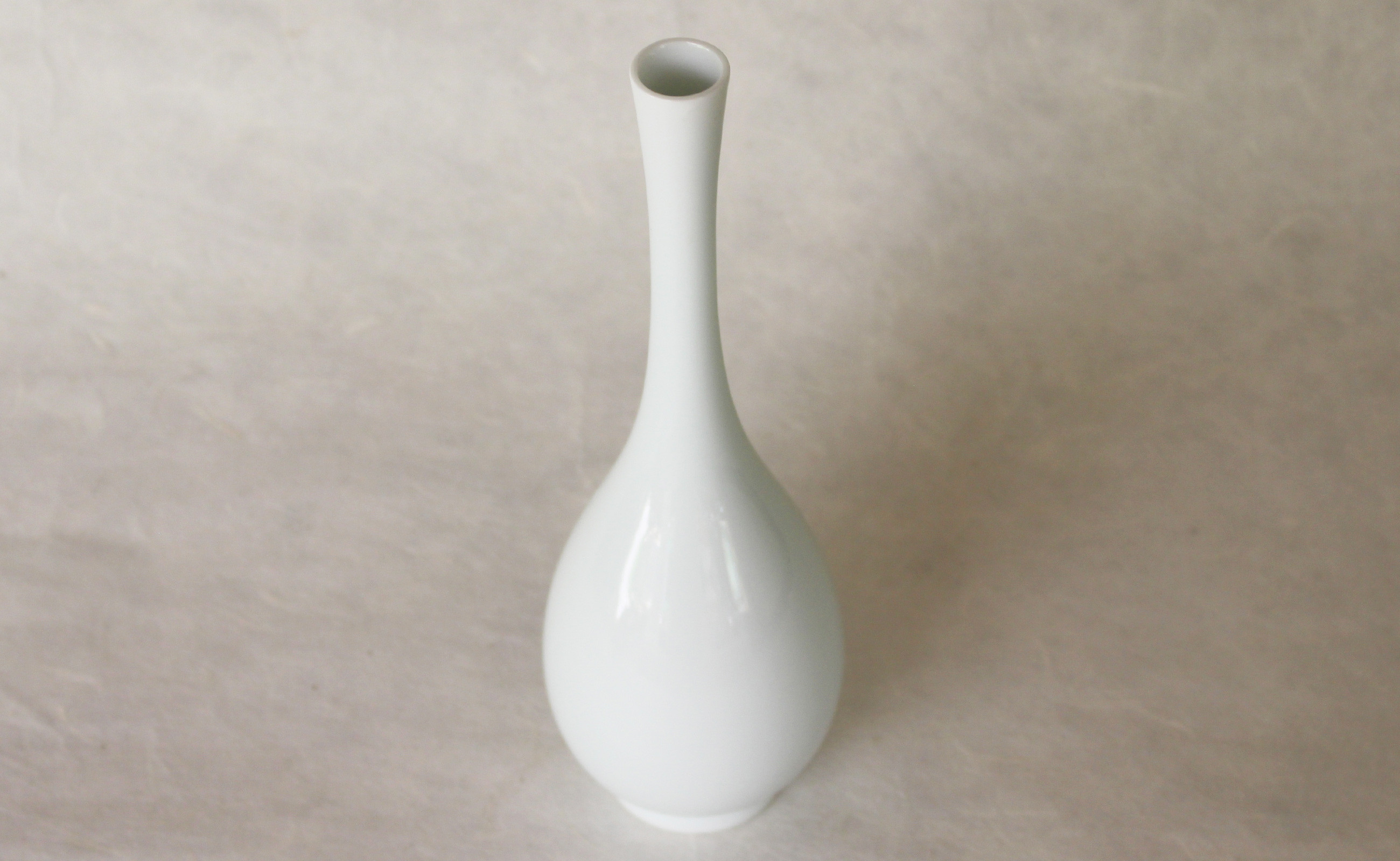 ろくろの現代の名工 矢鋪與左衛門作 白磁 細首花入れ 有田焼 伝…