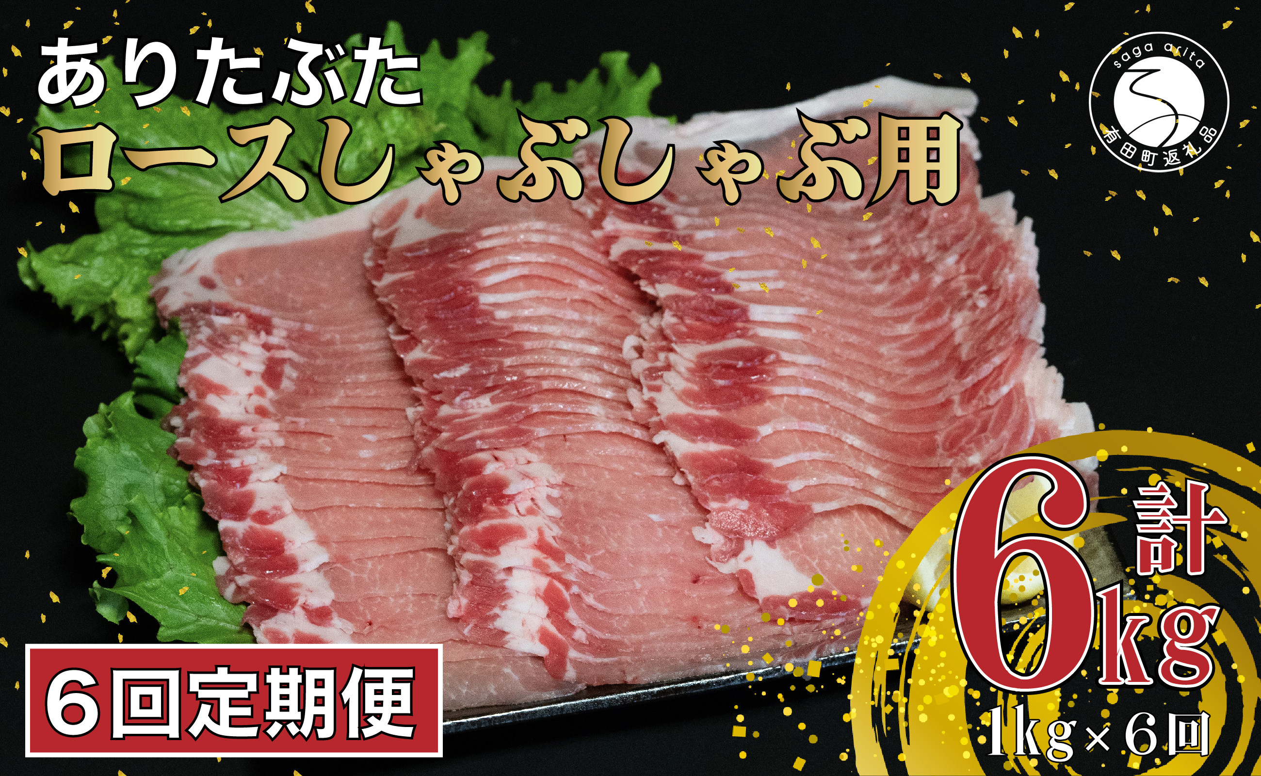 | 容量 | 1ヶ月に1回、全6回下記内容をお届けします。 ありたぶた ロース(しゃぶしゃぶ用) 約1kg (200g×5パック) |