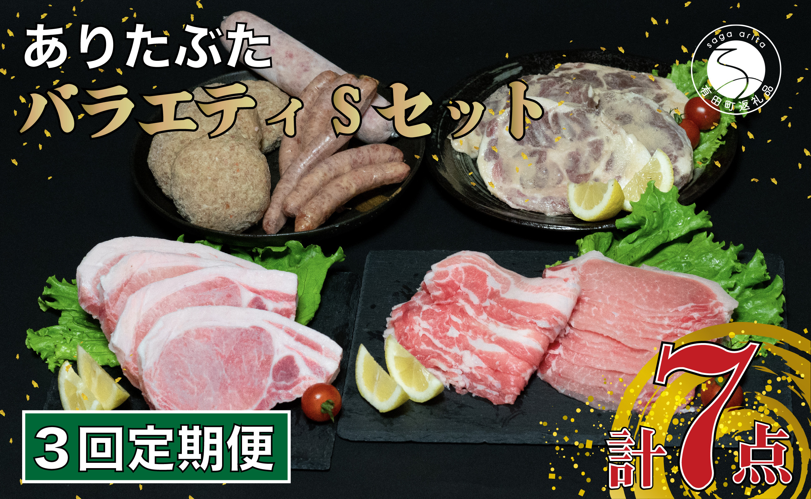 肉の旨味が違う!自然由来、地産地消の飼料で育てたありたぶた! 【3回定期便 豚肉7種セット】ありたぶた バラエティSセット (豚肉7種) 3回 定期便 小分け 真空パック 豚肉 ロース バラ ウインナー ソーセージ ハンバーグ N75-2