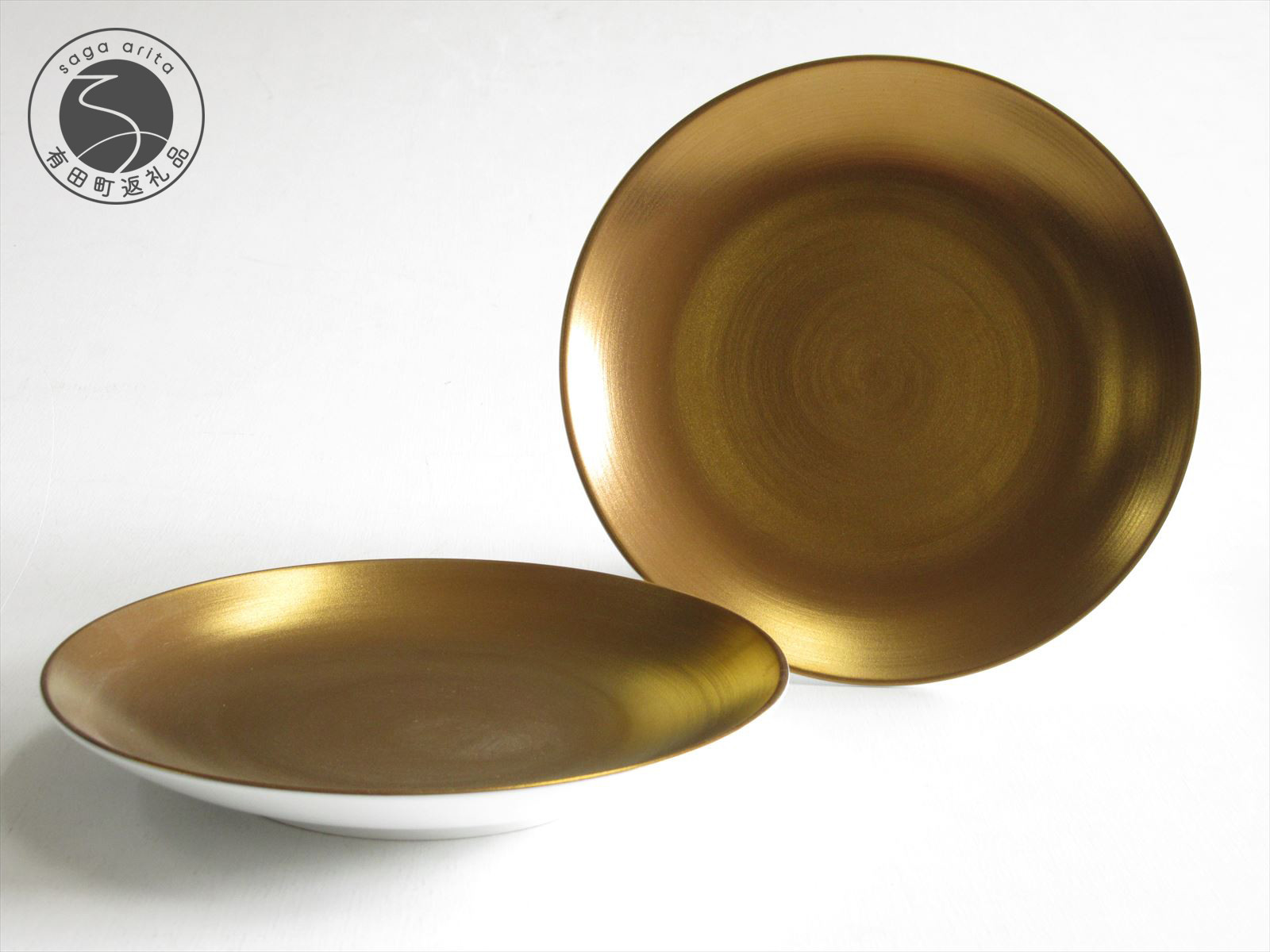 刷毛目が美しい上品なゴールドの取り分け皿 ARITA PORCELAIN LAB (アリタポーセリンラボ) ゴールド ペア平皿 (小) 有田焼 モダン 取り皿 A60-71