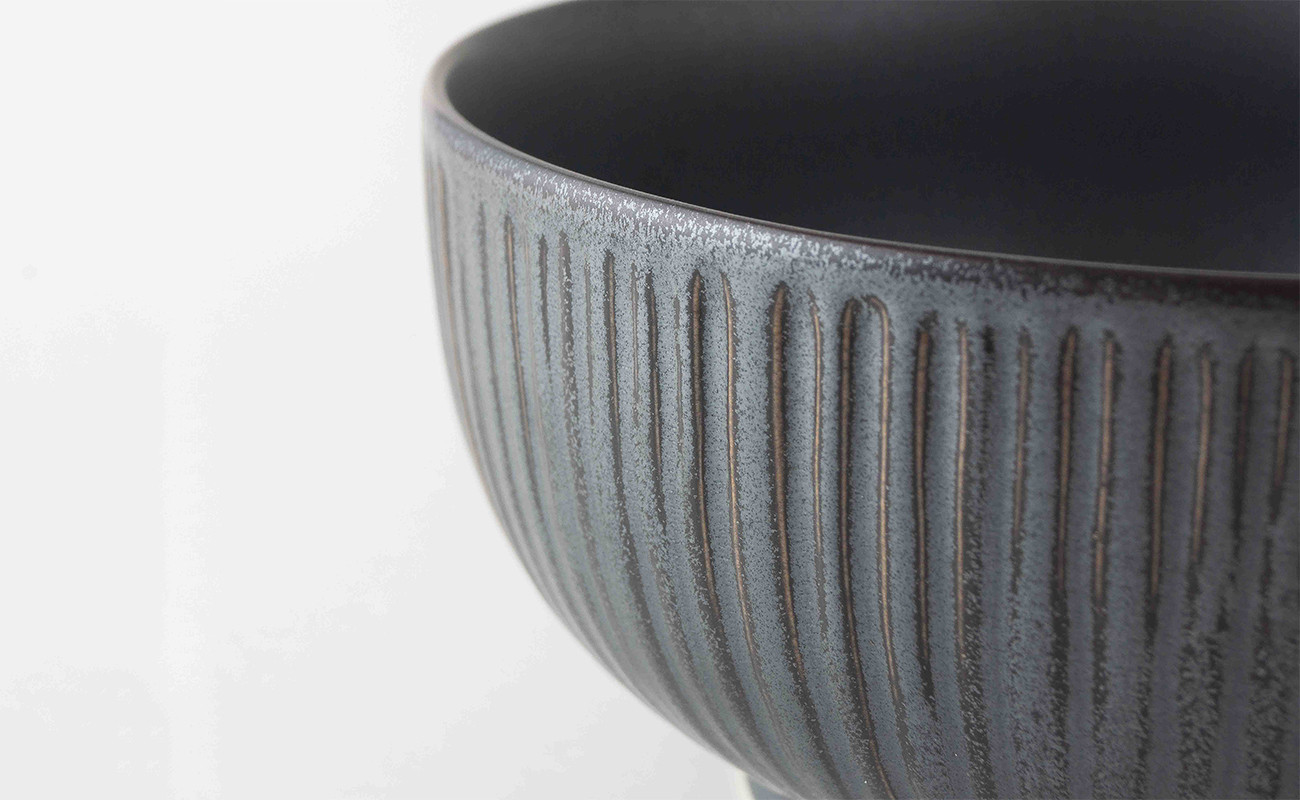 シンプルな形状で縦に彫られた「しのぎ」は、ほかの器とも相性が良く、飽きることなく長くお使い頂けます。