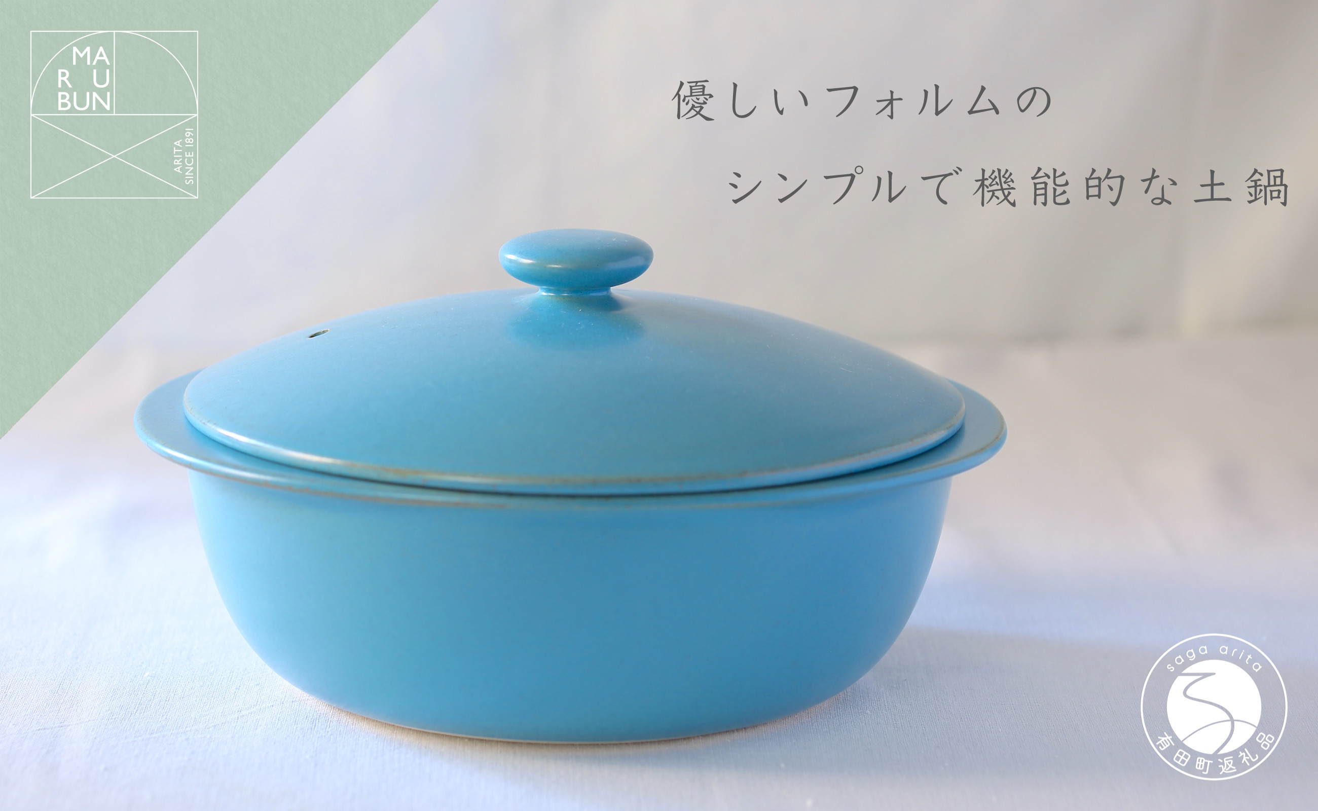 シンプルで機能的な大きめサイズの土鍋 5waypot L スカイブルー おしゃれで大容量の土鍋 有田焼 料理家 河瀬璃菜 コラボ 食器 調理器具 キッチン用品 まるぶん A60-73