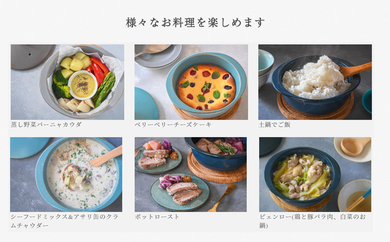 直火調理・レンジ調理・オーブン調理・混ぜる調理器具・盛り付ける器として