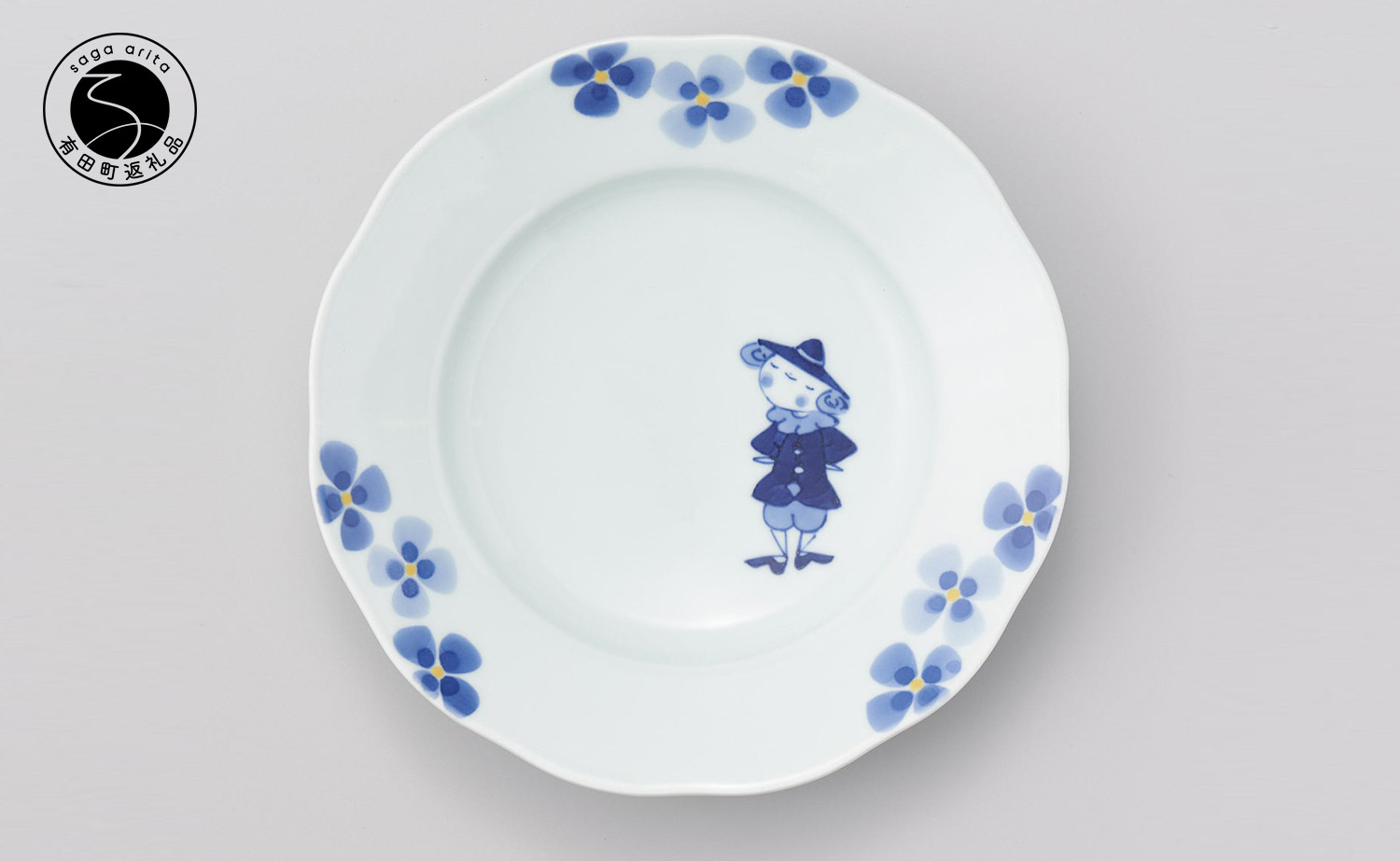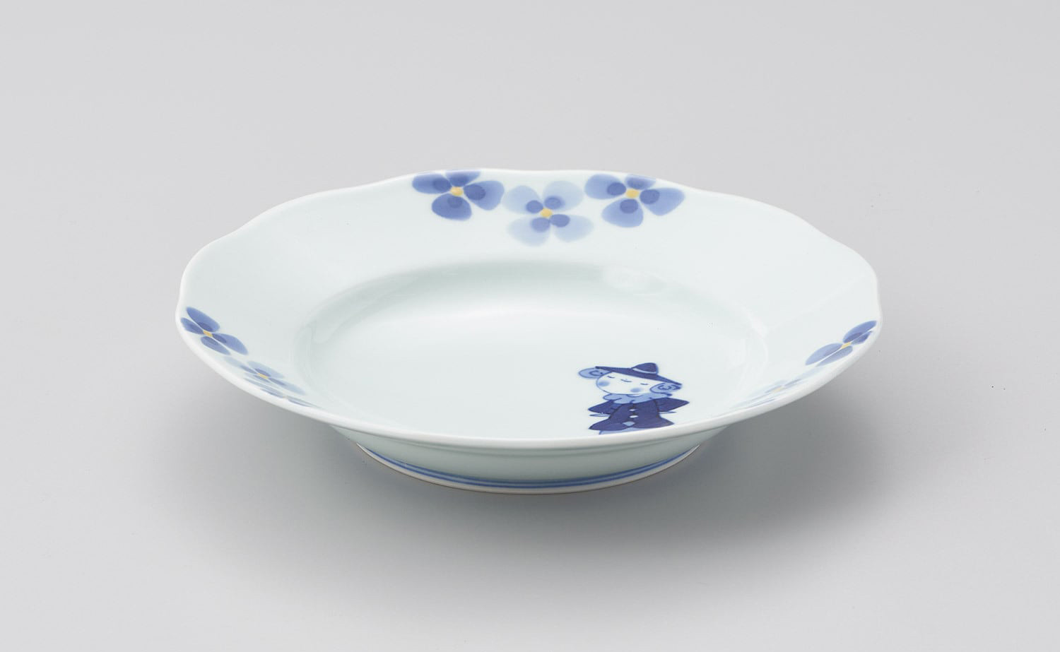 色々なお料理に使える可愛いお皿です。 しん窯青花 夢みる異人ノーブル21cm リム皿(スマイル)有田焼 食器 器 うつわ 手描き プレート 小島芳栄堂 A20-499