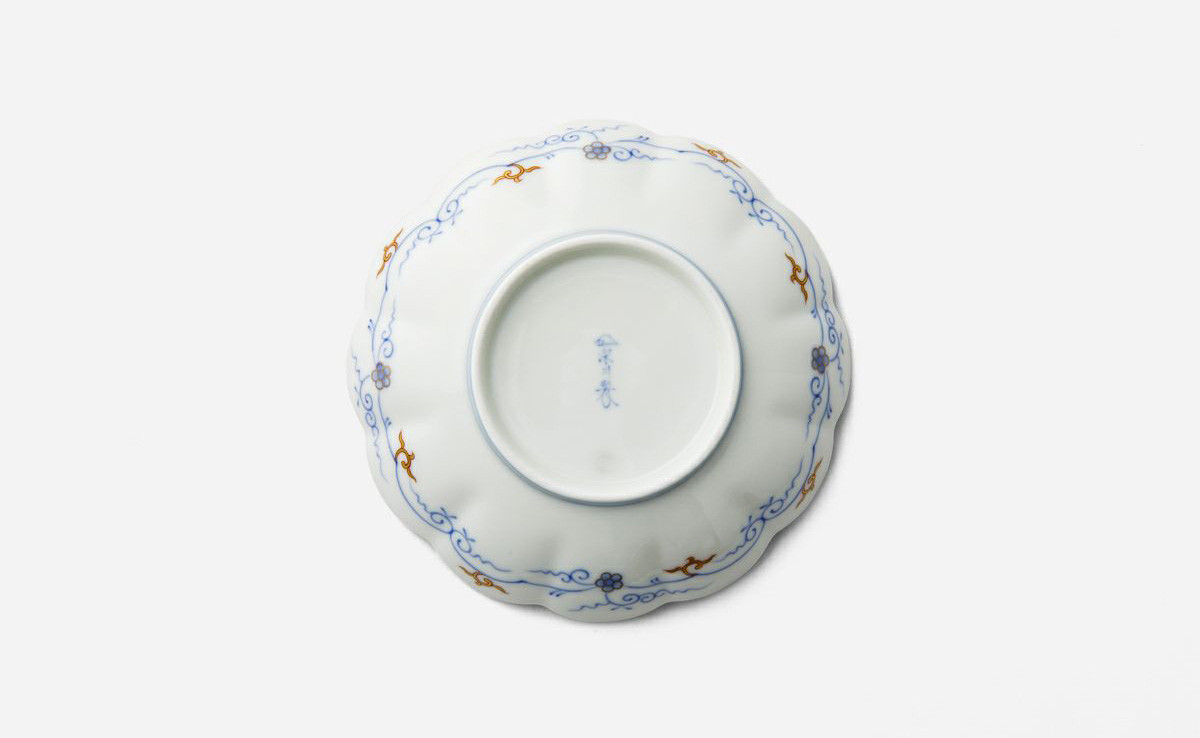 菊割部分の淡い染付と赤絵で施された明治期の意匠との対比が作品の魅力を更に際立たせています。
