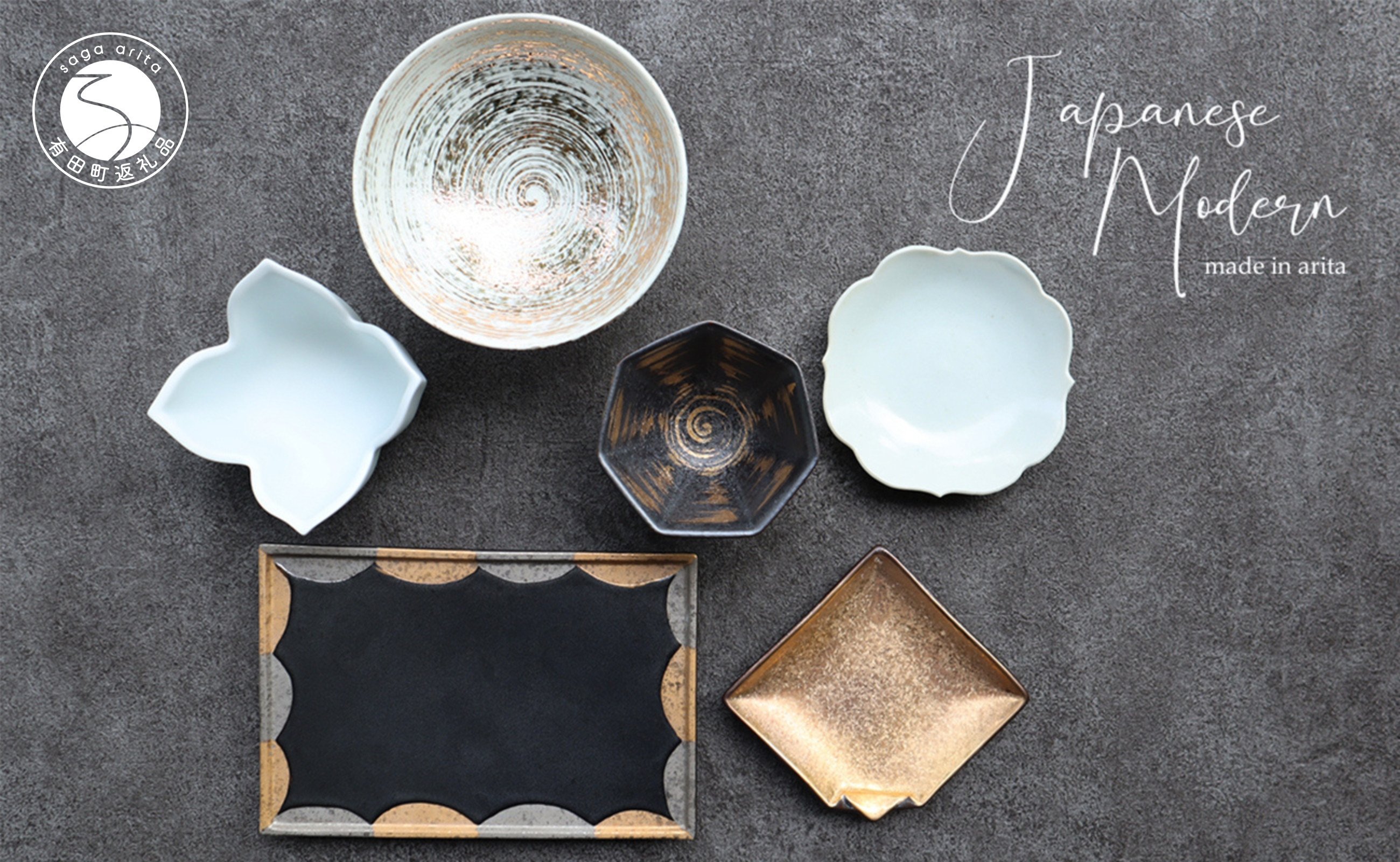 人気のそのまま使える食器コーデセット! 有田焼 Japanese Modern 和モダン 6点セット まるふく 和食器 お魚のお皿 デザートカップ 小鉢 小皿 シンプル A40-294