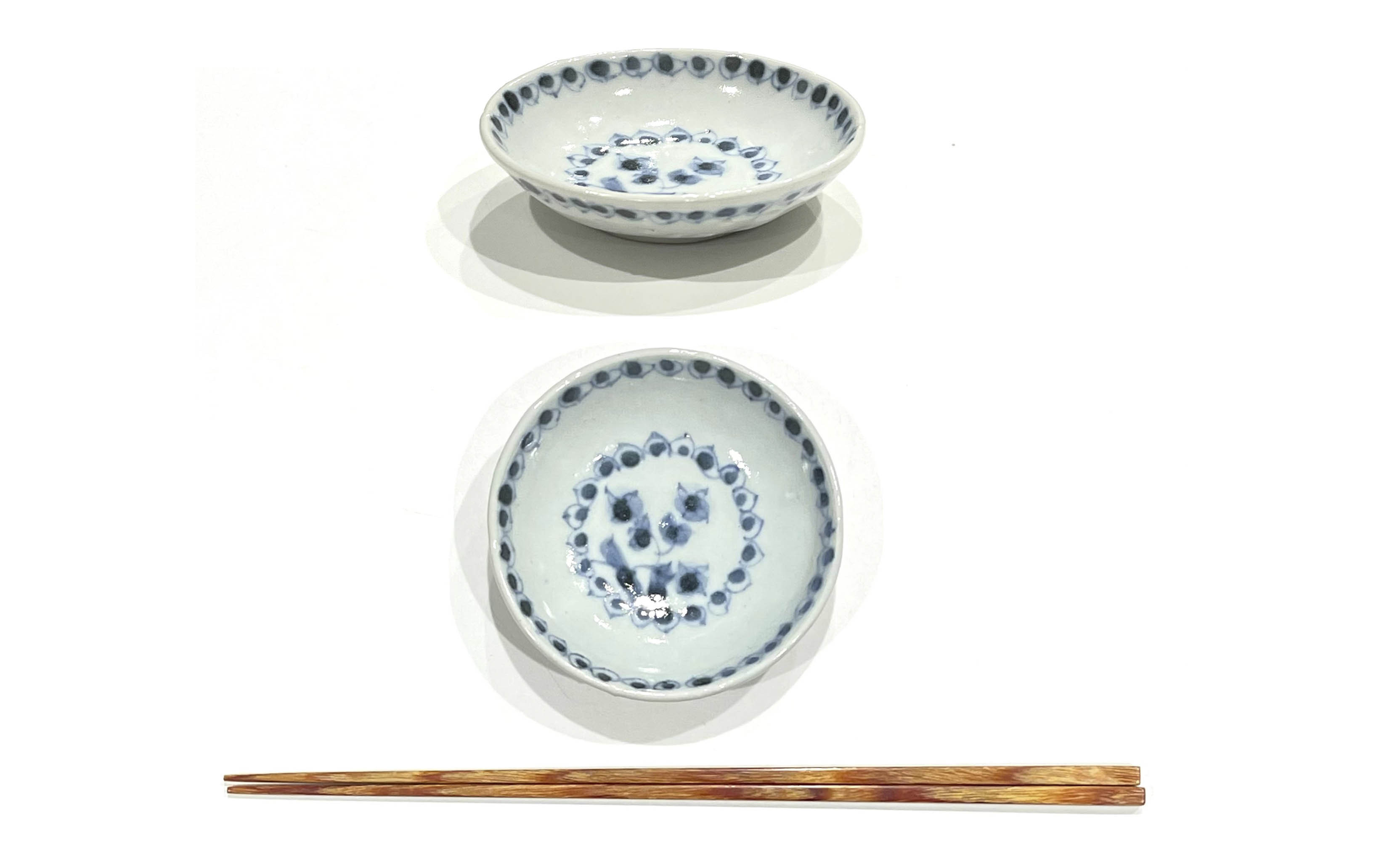 初期伊万里 の雰囲気を目指し、手作り、手描きはもちろん、土の配合から呉須の調合、釉薬まですべて手作業にて制作されています。 釉薬に使用する灰は、薪ストーブから出る灰を使用し、自然なままの質感を追求された器たちです。 荒々しい土や、渋い呉須の色、アンティークな釉薬の色と、使えば使うほど愛着がでてきます。 こちらのお皿は一つ一つ手作りで作られております。 小皿としてはもちろん、和菓子などちょっとした銘々皿としてもステキです。 ※箸はサイズ比較の為に載せており、返礼品には含まれません。 窯元:工房禅・横田翔太郎 提供:西富陶磁器