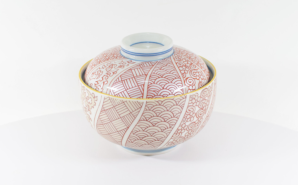 盛る食材に彩りを添える朱 祥瑞(しょんずい)蓋つき茶碗 有田…30,000 円 和洋合わせやすい!華やかでお正月や祝いの席にぴったり。 - ギフト包