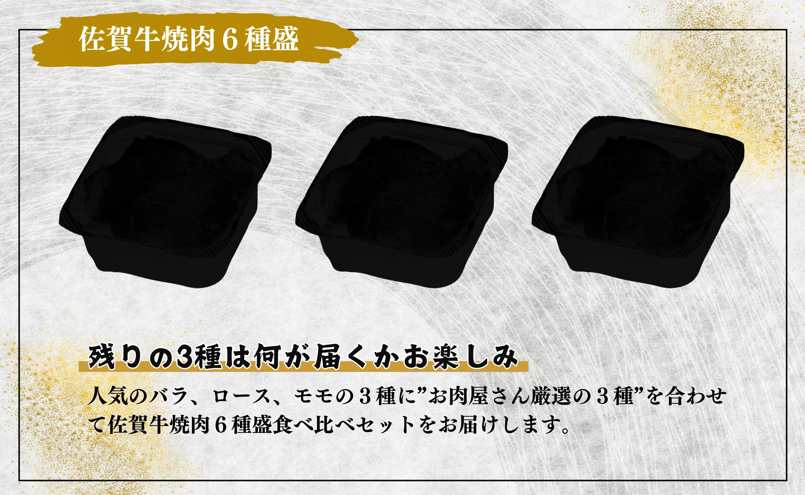 様々な部位を美味しく、愉しく食べ比べ! 佐賀牛を焼肉で食べ比べ!6種セット 【ロース・モモ・バラと焼肉屋さん厳選3種】を組み合わせた 合計360g(60g×6種類)焼肉セット 佐賀牛 高級和牛 ロース バラ モモ 部位別 焼肉屋さん 厳選 ギフト 贈り物 【有田まちづくり公社】N30-40