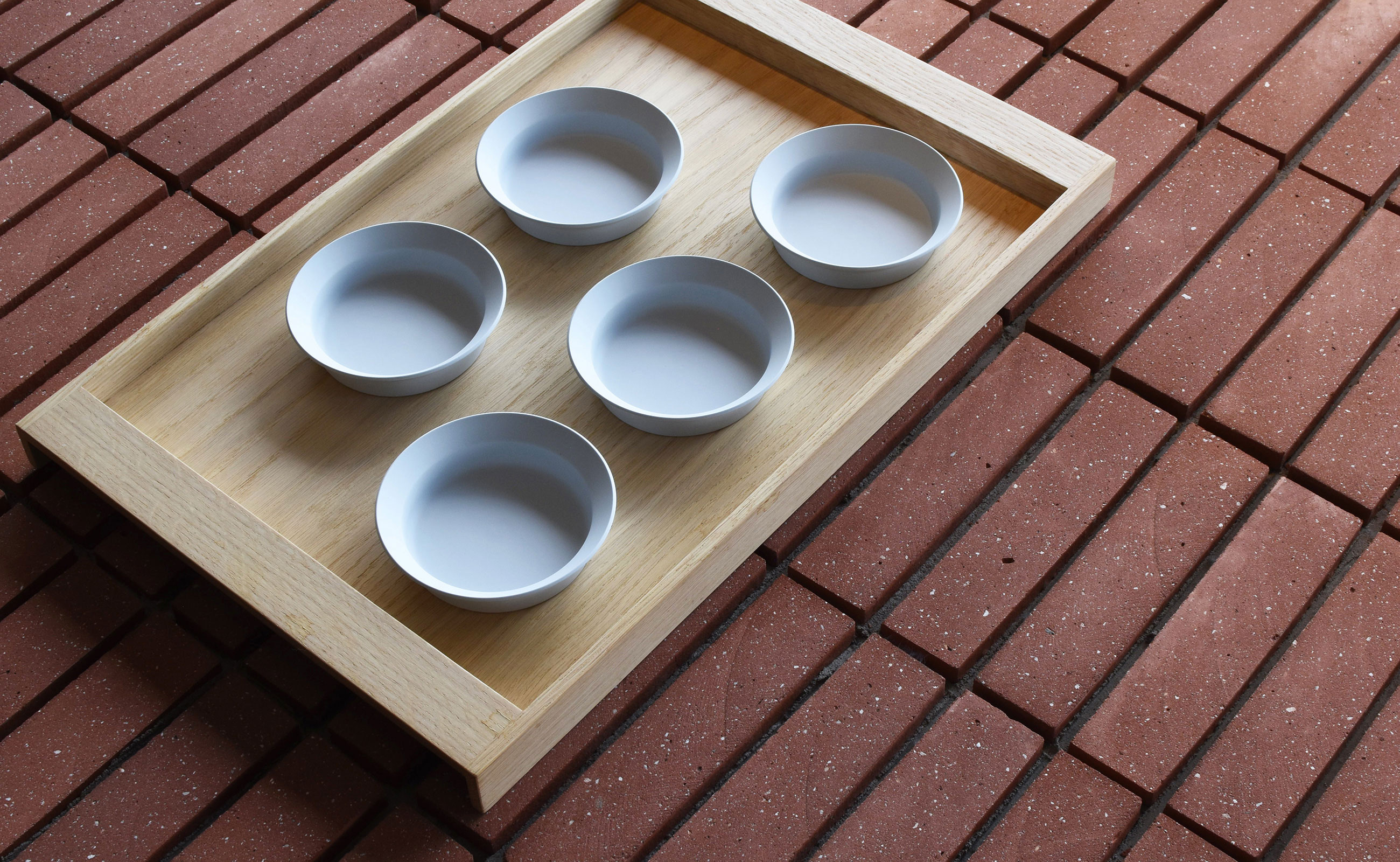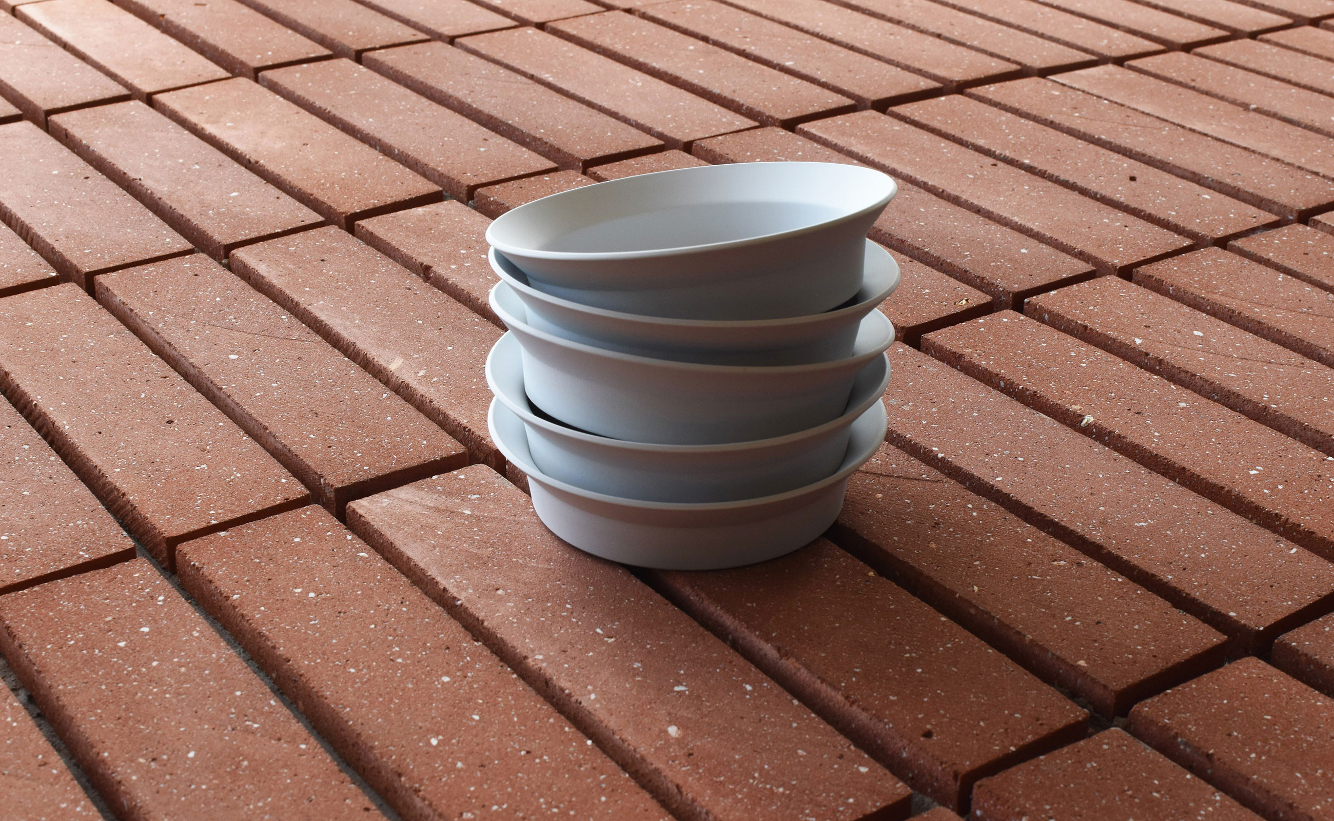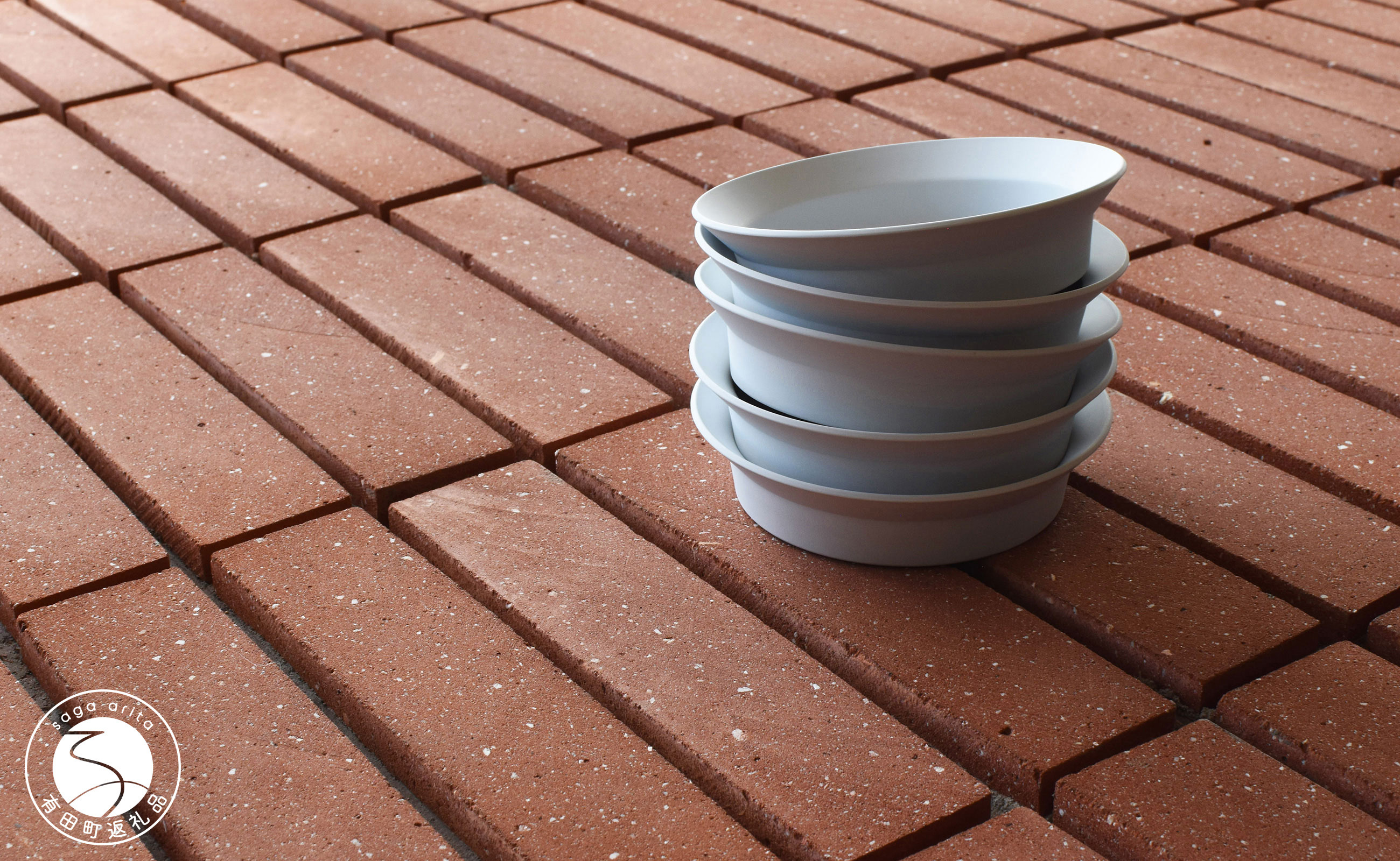 用途を限定しないフレキシブルな形状でありながらも、非常に強度のある陶土を用いたライトグレーの器は、有田焼の持つ、華美ではない美しさを現代に引き継いでいる。