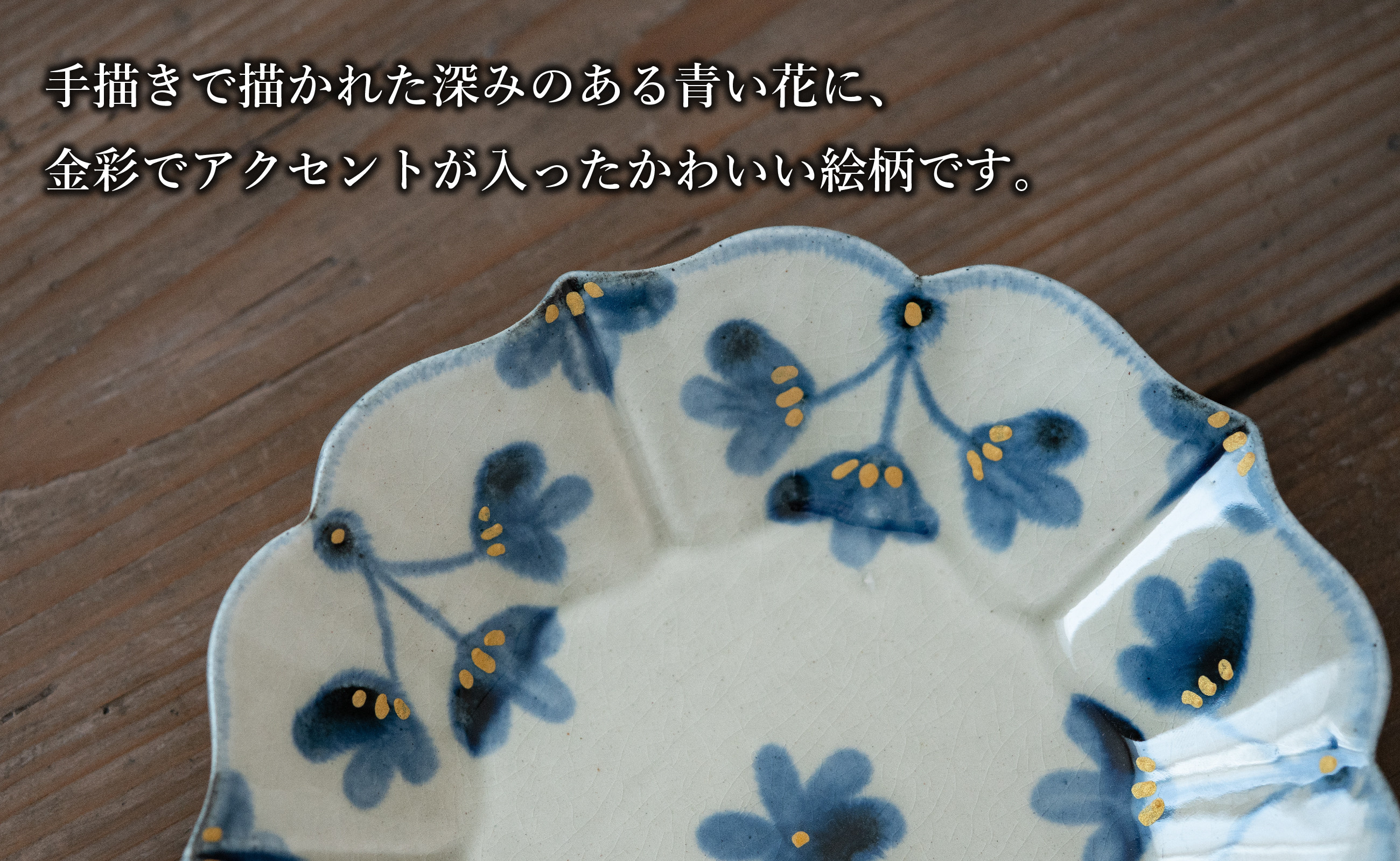 お花の形をモチーフにした桔梗渕がかわいい器で、ティータイムに、おうちご飯の取り皿にと活躍してくれます。