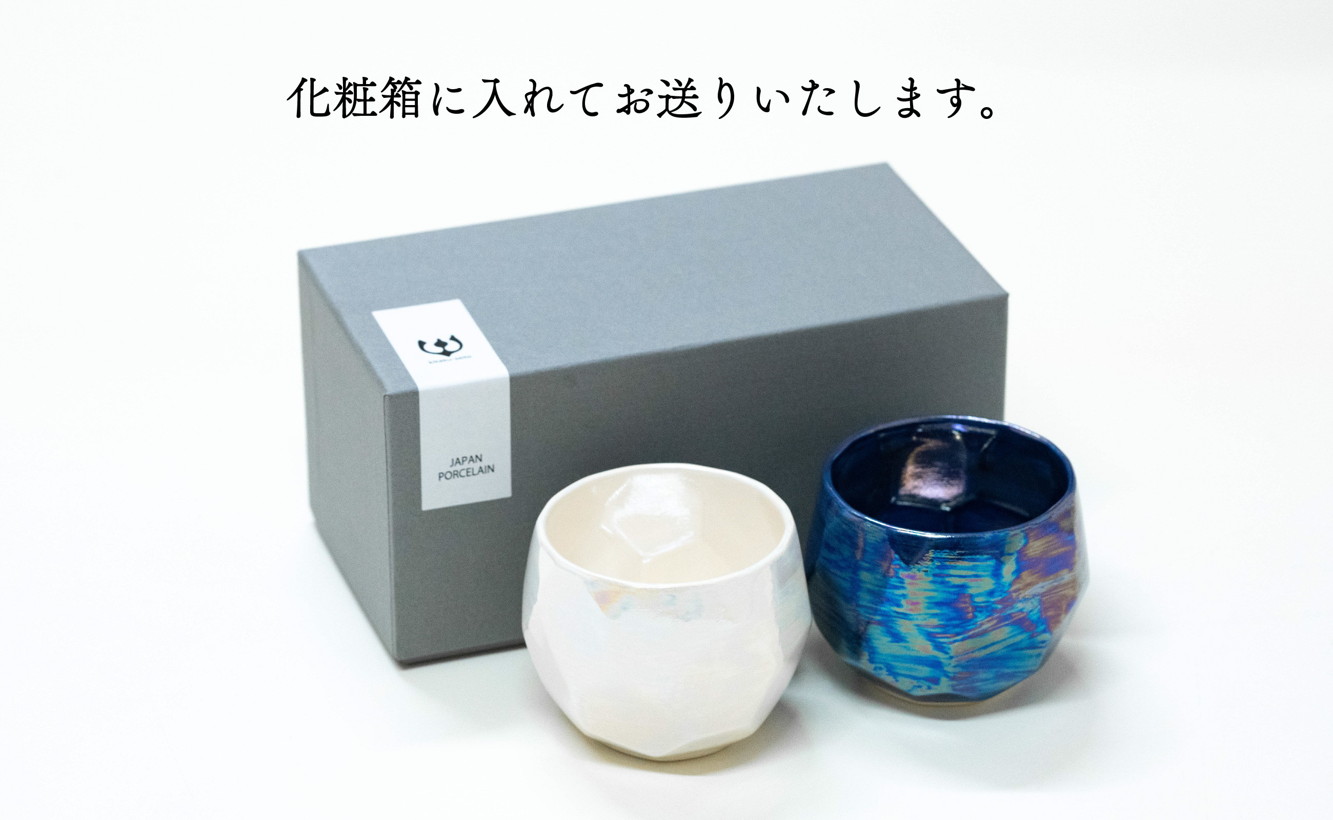 まるで金属のような光沢の有田焼。贈答にも◎ 【晩酌を華やかに】メタリックな有田焼 ロックカップ(面取り) 青 & 白 計2個セット 女性にも人気 【喜鶴製陶】軽量 ギフト ペアセット 食器 有田焼 ロックグラス ビアカップ タンブラー A15-277