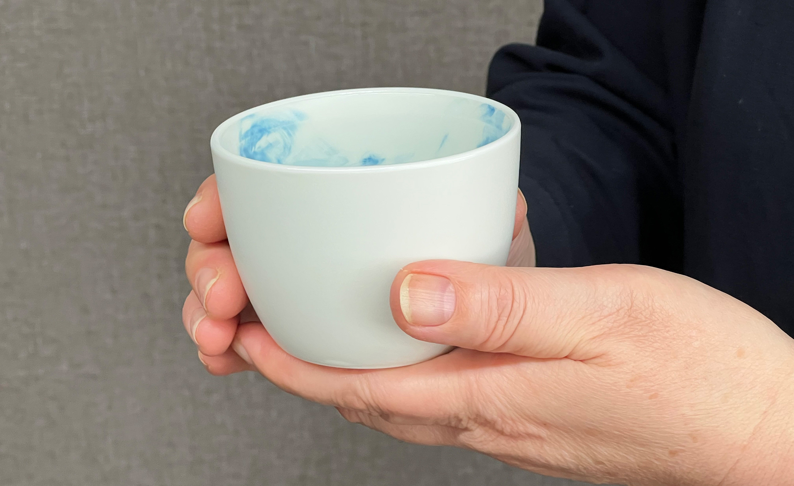 3:施釉(磁器の表面にガラスの光沢を与えるために釉薬をかけます。)