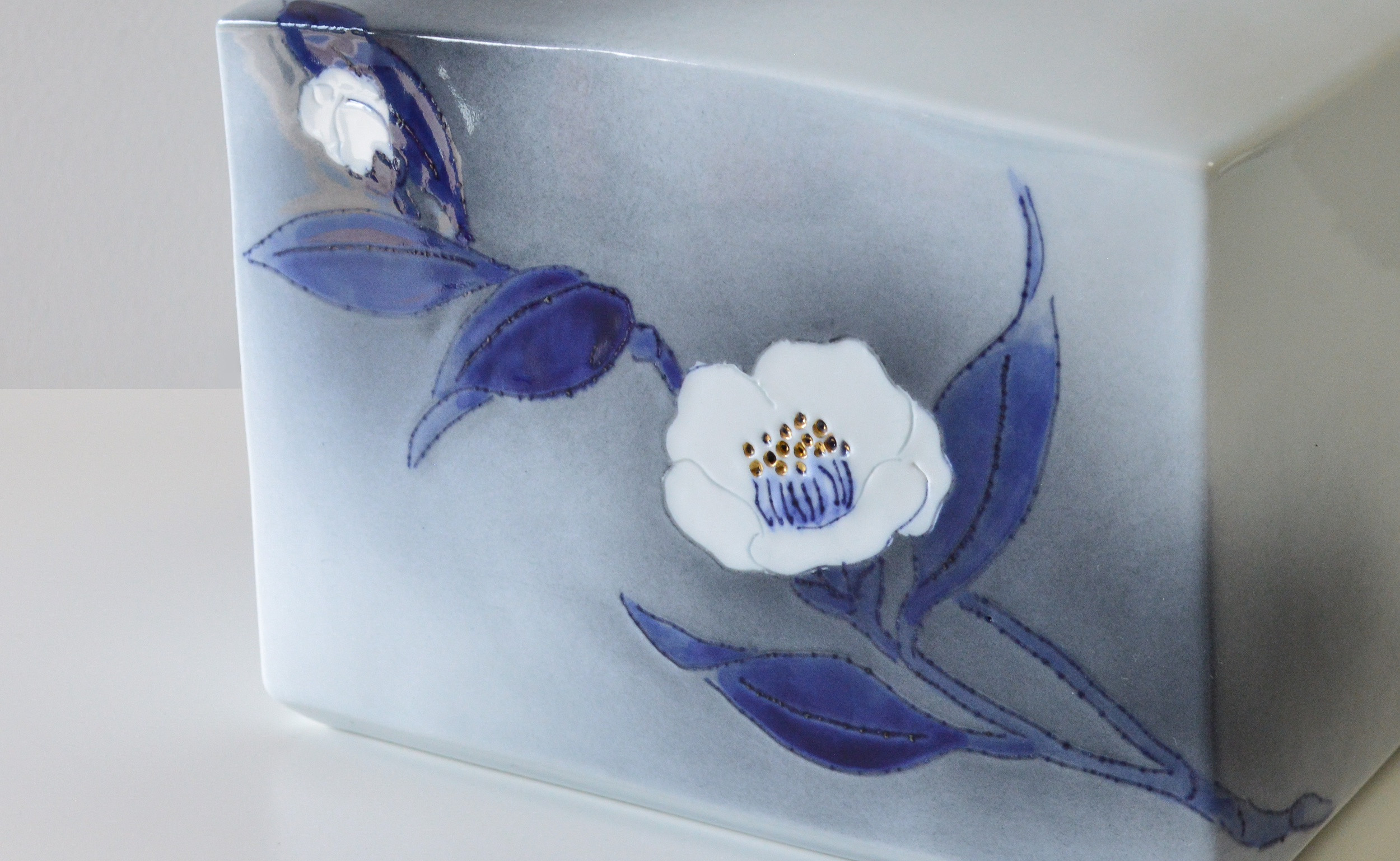 チョイス限定 花器として オブジェとして 暮らしに寄り添うアート 有田焼 線刻吹墨金彩花器「白椿」【聡窯 辻聡彦】陶磁器 花瓶 置物 オブジェ インテリア アート ギフト A260-15