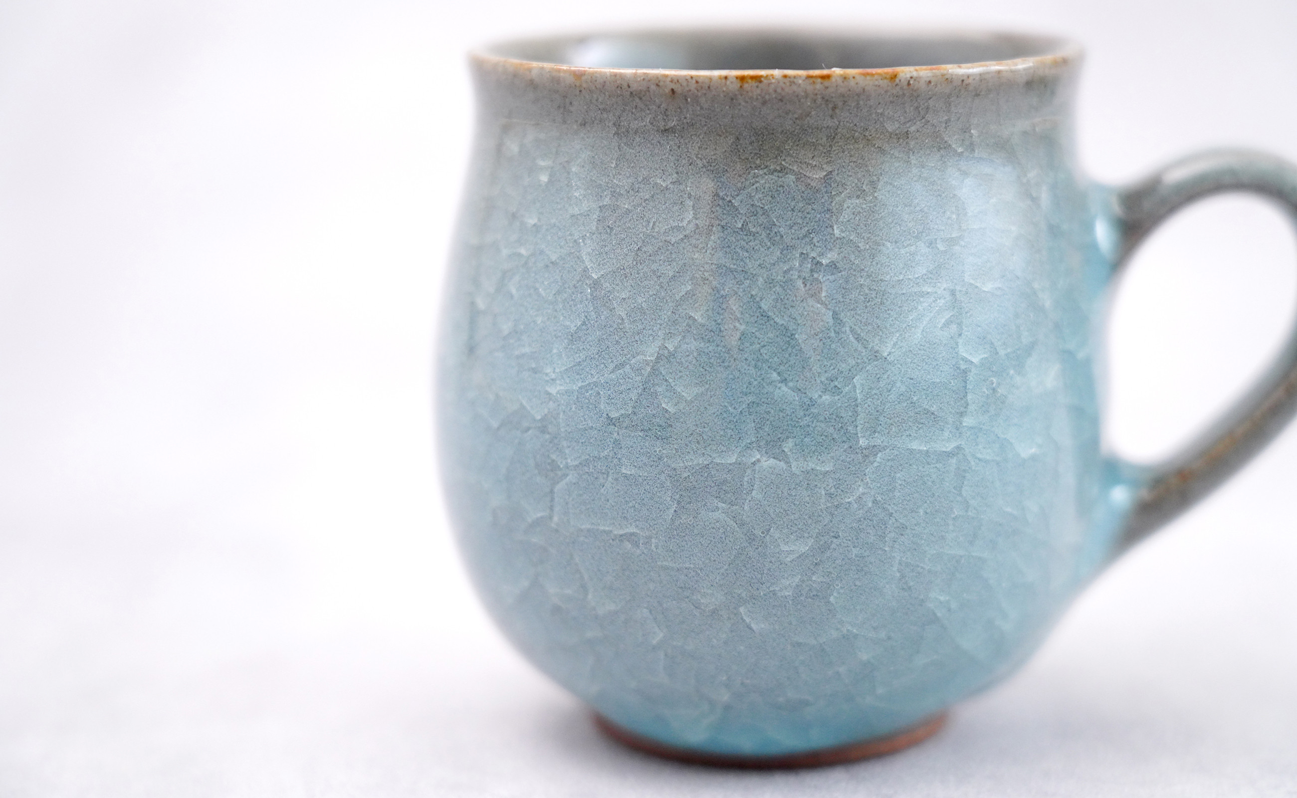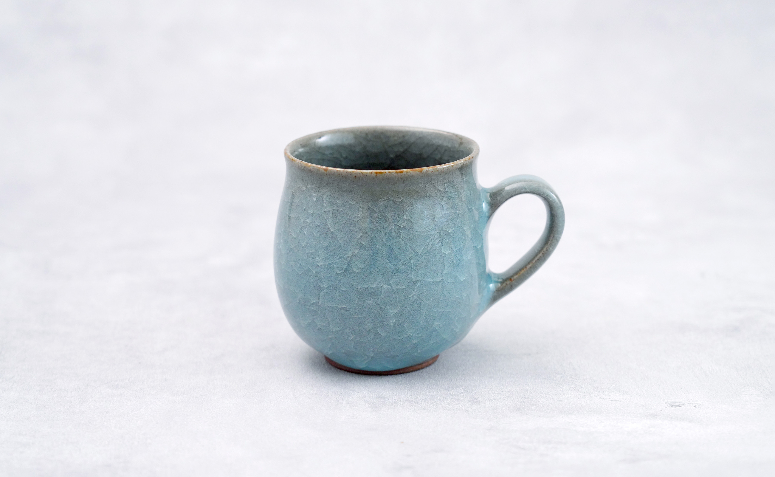 青磁特有のひび模様が美しい「貫入丸マグカップ」です。
